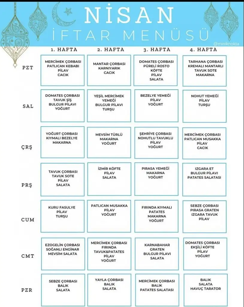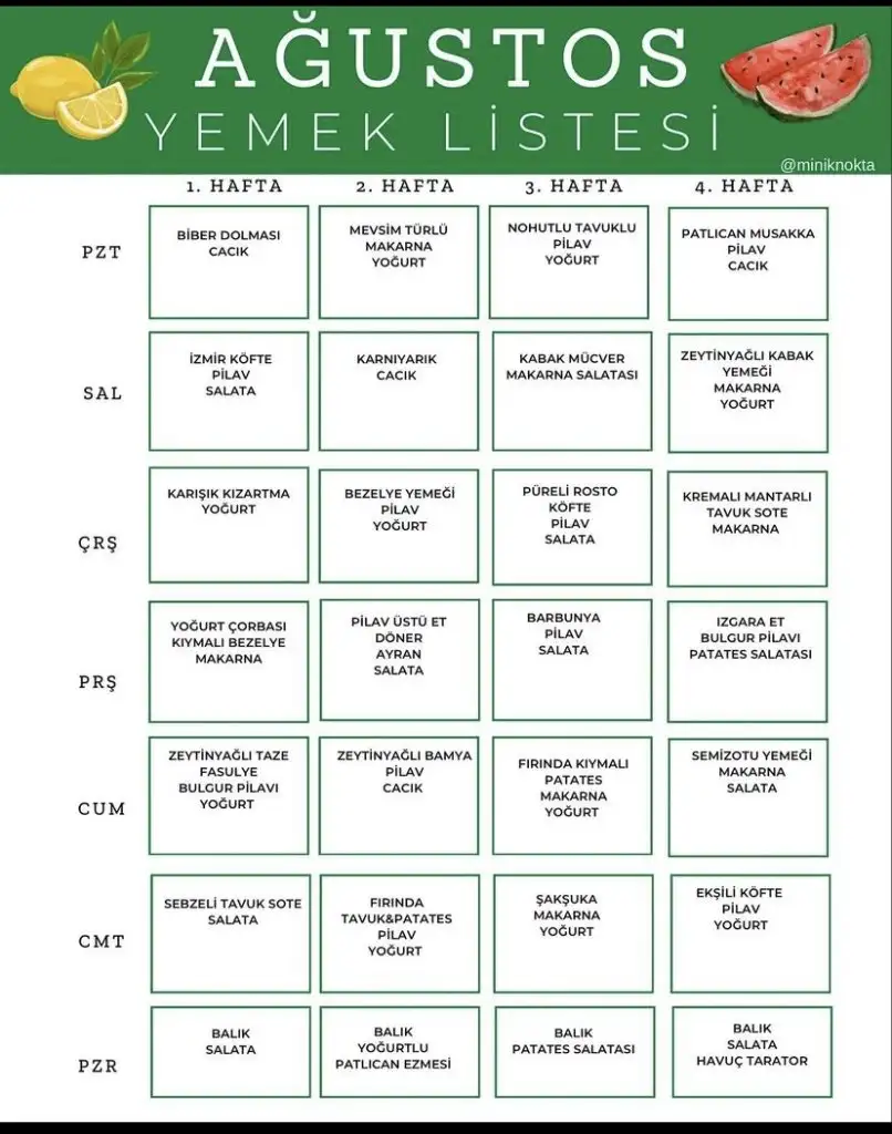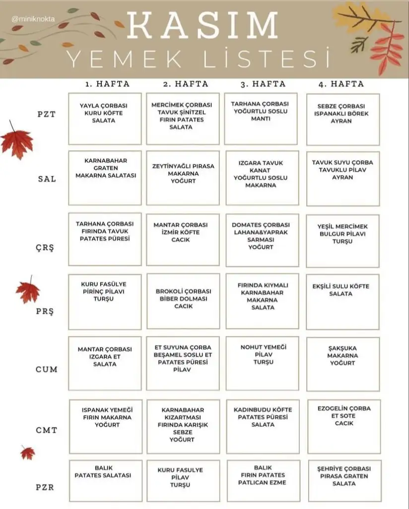 Şöyle bir liste buldum instagramdan. Belki işinize yararDiğer aylarında var isterseniz atarım.