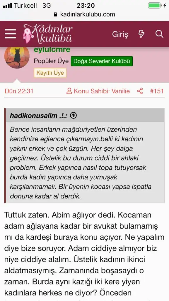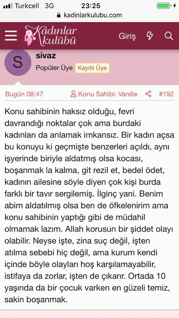 Ayrıca sizin aldatan kadınlara karşı bir zaafınız var sanırım, hoşunuza gidiyor.Ya aldatıldınız intikam duygunuz var ya da aldatmayı seven birisiniz en azından dürütçe kendi güruhunuzu savunuyorsunuz.