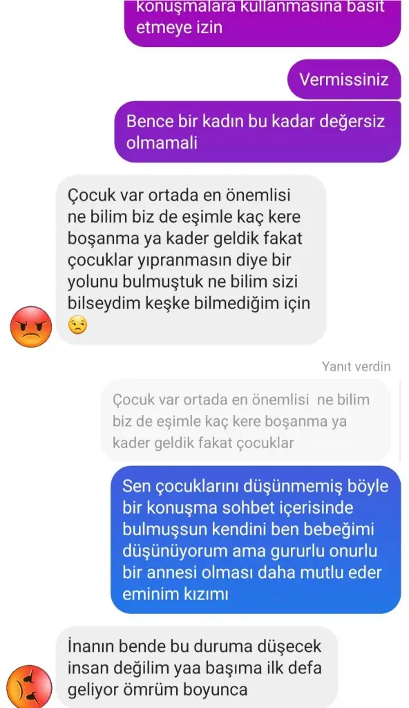 benim ikinci evliligim eşim daha önce hiç evlenmemisti aramızda 3 yas fark var ben büyüğüm esime gore. Tanisma asamasinda çok peşime düştü bu isin olmayacağını söylediğim halde peşimi bırakmadı beni ikna etme çabası ilgisi aylarca sürdü etkilendim sevmeye başladım ikna oldum evlendik şimdi bir bebeğimiz var ama evlendikten sonra adam çok değişti kaba saba agresif bir adam ortaya çıktı bana sürekli sataşan ağır sözler söyleyen sürekli kurallar koyan beni değiştirme çabasında olan herseyimi kısıtlayan bir adama döndü arkadaşlarımla gorusmemw bile engel oldu sonra ailesinin yanına tayini çıktı ve yeni taşındık oldukça sabırlı ve sakin biriyim eşime göre herseyini idare etmeye çalışıyor sözlerini dinliyor değer veriyorum istediği gibi bir eş oldum. Kızımıza da çok düşkün sorumluluk sahibi biri diye bazi ters huylarini idare ettim. 4 gun once hiç karistirmadigim telefonunu inceledim ve yıkıldım intagramdan kadınlarla cinsel içerikli konuşmalar sevgili olmaya ikna etmeye çalışmalar en kötüsü de üstelik kadının birine beni kotulemis bosanacagini söylemiş benimle tartışma sırasında yazışmalarımizin ekran resmini atmış gece bunları görünce sabah çantasını hazırladım ve kapının önüne koydum evden gonderdim bunu kabul edemeyeceğimi soyledim sorun çıkardı sanki gidip yattim mi buluştum mu bu kizlarla dedi ama kabullenemedim yine.sonra annesi babası beni karşısına aldı oğlumuz ne yapsa haklı sen evlenmiş boşanmış birisin oğlum bekardi inanmayacaktin kanmayacaktin yalanlarina oglumun dedi simdi ne yapsa aldatsa üstüne evlense sesin çıkmayacak sor7n çıkarmayacaksınız dedi ben şok ağla ağla çıktım evlerinden birde eşimin evlenmeden önce kendi adına evi var orda oturuyoruz kabul etmiyorsan oğlumun evini boşalt dediler üstüne oğlumuzu dugunlu davullu evlendirecegiz bekar biriyle dedi babası sizce ne yapmalıyım çok üzüldüm çok zoruma gitti siz olsanız ne yapardınız lütfen kırmadan üzmeden yorum yapın zaten çok zor duygularım