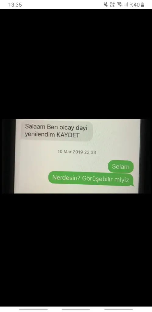 Geçen telefonunda gezinirken mesajlarında geçen seneye ait bu mesajı gördüm sürekli farklı aylarda atılmış mesajlar var çoğunda böyle şeyler yazıyor hepside farklı numara bu sonuncusu fakat en sonuncusuna cevap vermiş.