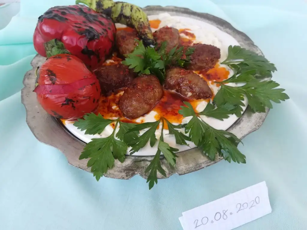 Patlıcani ve yoğurdu buluşturduk tan sonra üzerine köfteleri alıyoruz afiyet olsun :))