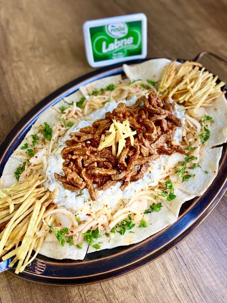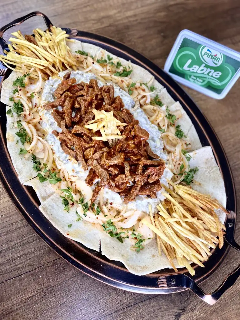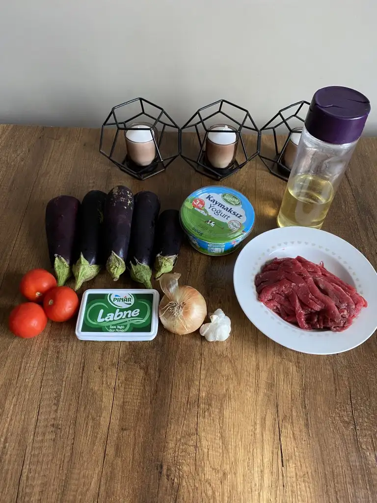 Patlicanlari soyup ince ince dogruyoruz. Yogurt sarimsak tuz ve labne ile birlikte karistiriyoruz. Etleri suzup tavaya aliyoruz tereyagi iki adet rendelenmis domates ve bir kasik salca ile suyunu cekene kadar kavuruyoruz. Tuz karabiber ve kimyonda ekliyoruz.Eki Görüntüle 2687326 Eki Görüntüle 2687327 Eki Görüntüle 2687328 Eki Görüntüle 2687329 Eki Görüntüle 2687330 Eki Görüntüle 2687331