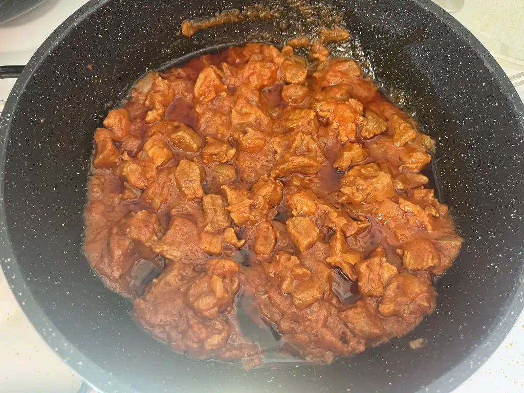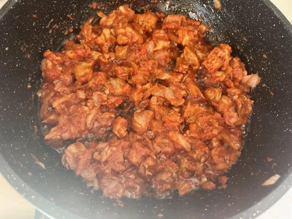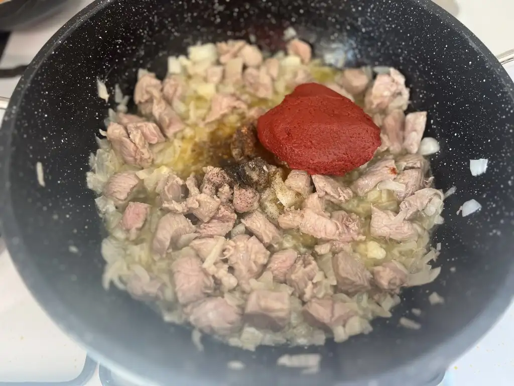 Eti de hafif kavurunca salça ve baharatları ilave edelim