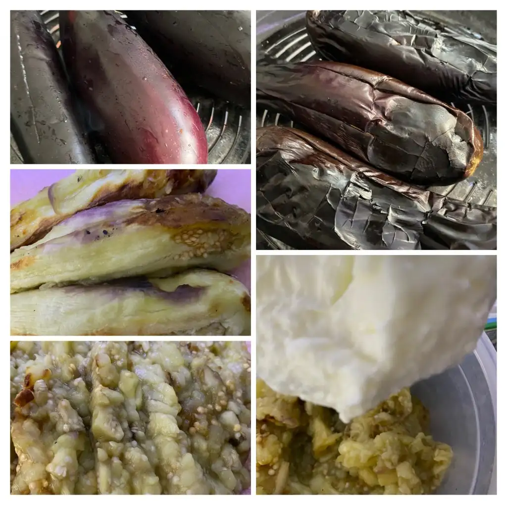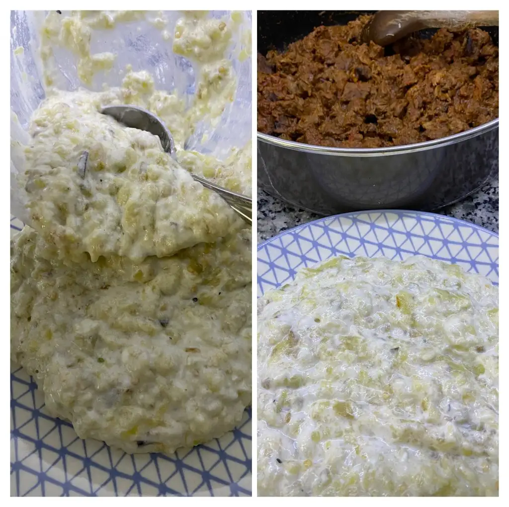 Diğer tarafta patlıcanlarımızı közleyip soyup doğradıktan sonra yoğurdunu tuzunu ve sarımsağını ekleyip karıştırıyoruz .