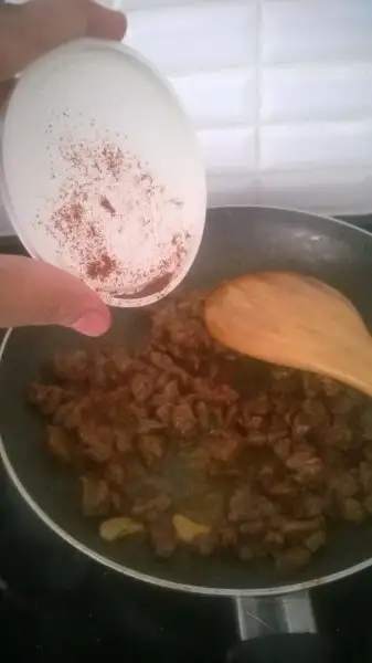 soğuduktan sonra sarımsaklı yoğurtla karıştırıyoruz. Etlerimiz suyunu çekince içine toz kırmızı biber salça ve tuzu ekleyip kapatıyoruz.
