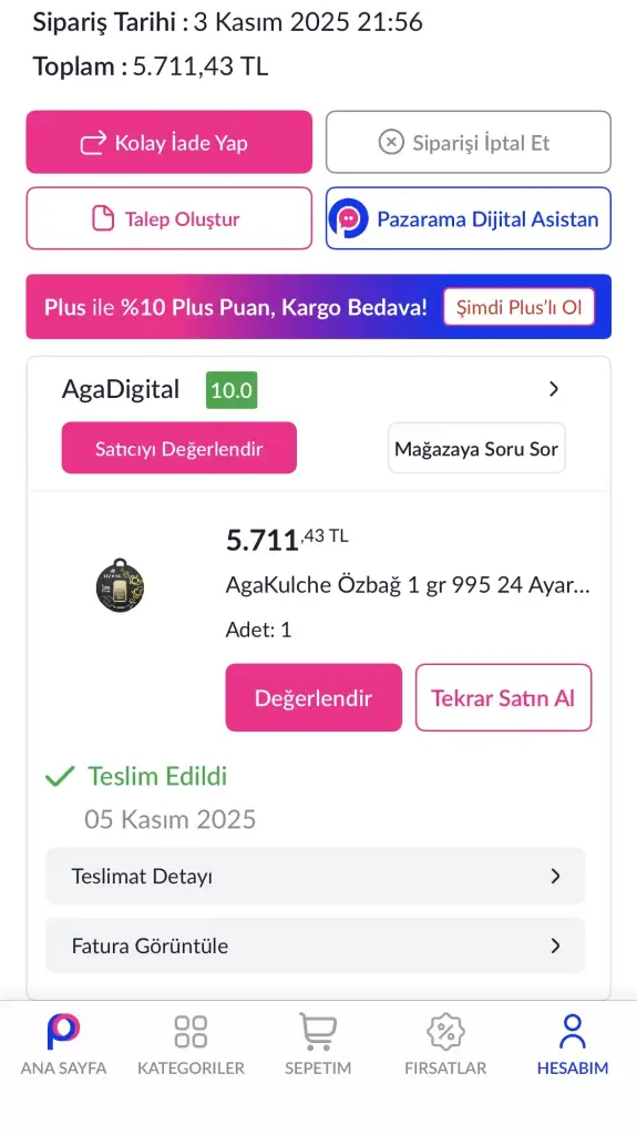 Trendyolda ki 1 gram ile arasında bin TL fark var neredeyse