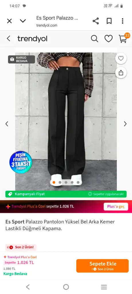700e pantolon var mı gerçekten, 1600e ucuz diyecektim benTeşekkür ederim, aslında dar paça lacivert pantolonum var ama ben rahatlığa alıştığım için elim palazzo ya kayıyor hep fiyatına baktım uygun olanlar 700 civarı kaliteli 1600