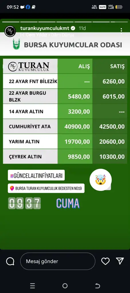 Pazar günü kocamı dinlemedim aldımGünaydın kızlarr. Dün altın alacaktım, salak kocam yüzünden alamadım. Bugün zarardayım