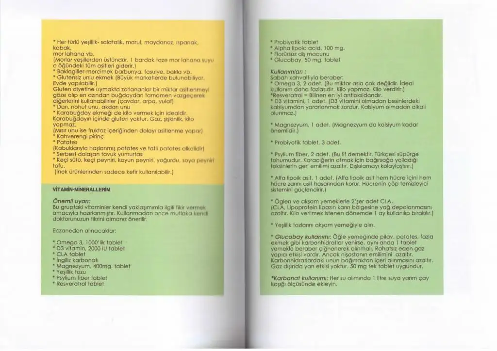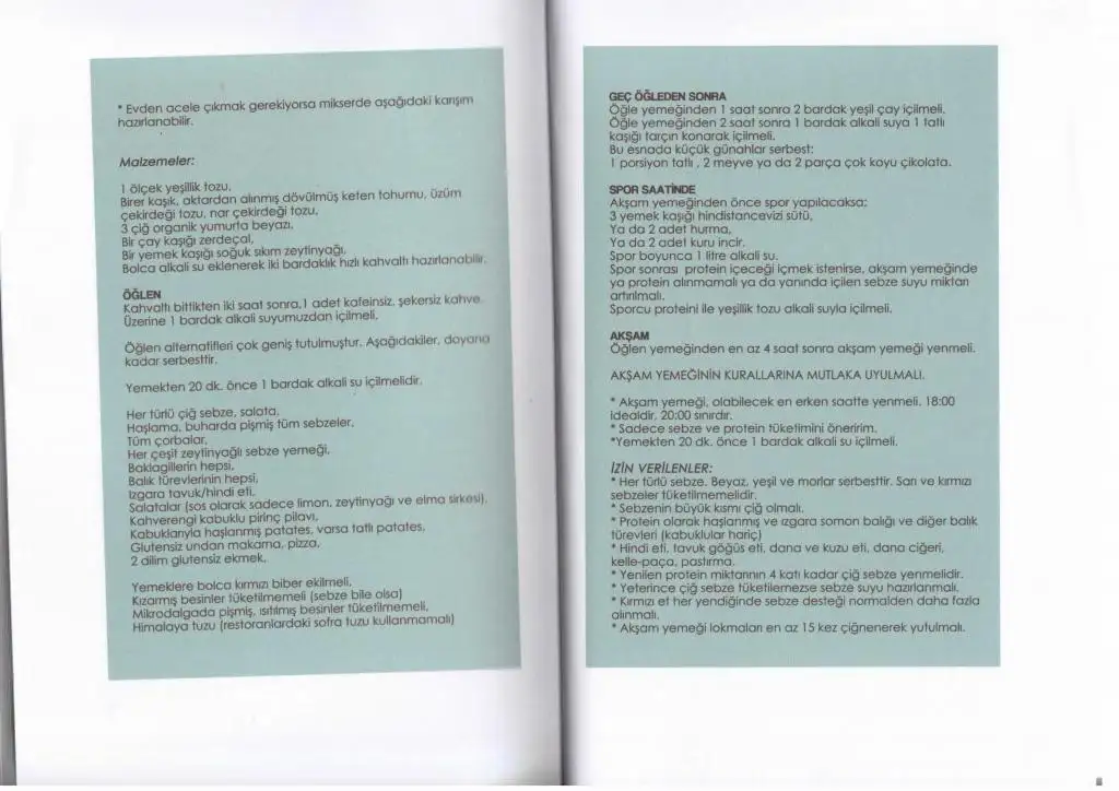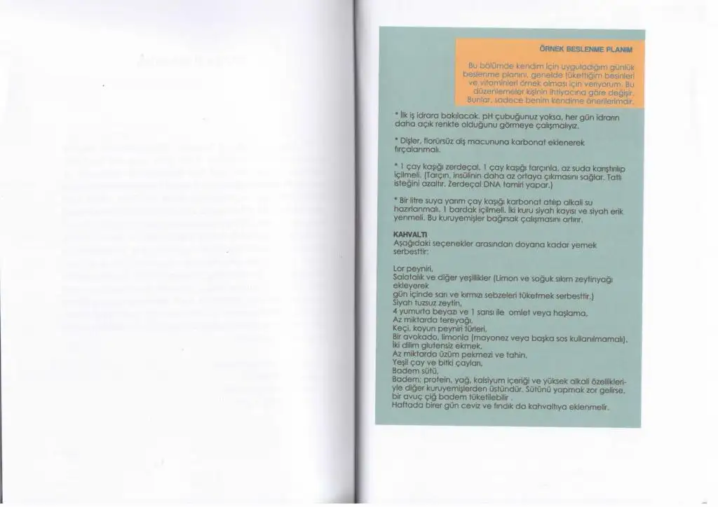ekte Dr.Ayşegül Çoruhlunun kitabından tablolar ve örnek beslenme planı varbizlere yardımcı olacağını düşünüyorum