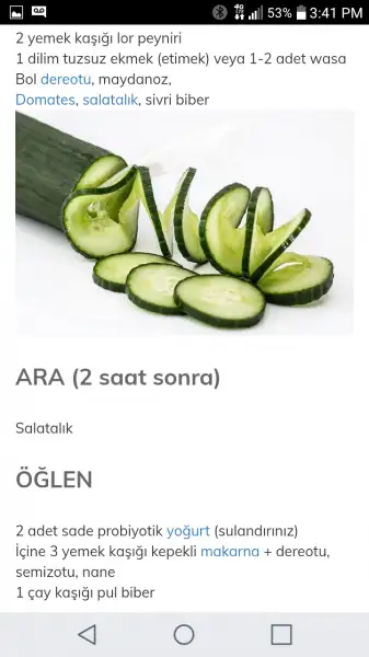 Baslangic icin kotu degil, ekmegi kokten kesmelisin. Ekmek aciktirir cunku. Yerine 10 badem at bak nasil doyacaksin. Ilk gun olmasa da ileriki gunlerde. Menulerinin resmini cekmiyoruz. Sadece ne kadar yedigini yazarsan mesela cevizli kofte icli kofte kac tane.