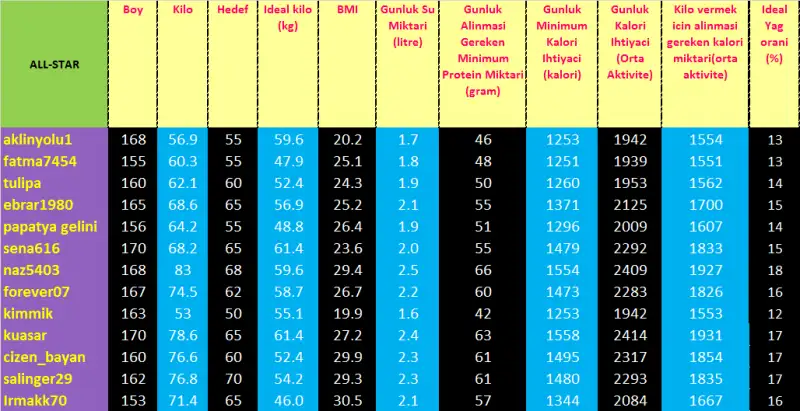 Yasinizi, hedef kilonuzu , boyunuzu belirtin. Kilonuzu ben biliyorum.