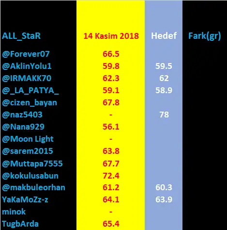 benim ki 60.3 dü canımKizlar bu haftaki hedefler nelerdi. Bir karisiklik olmus . O yuzden tekrar rica edecegim.