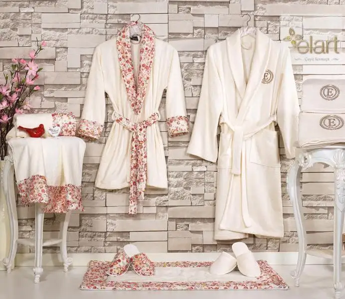 Şimdi bu bornoz setlerinde hep beden standart oluyor. Kadın bornozu medium, erkek bornozu large oluyormuş. Çok sordum.