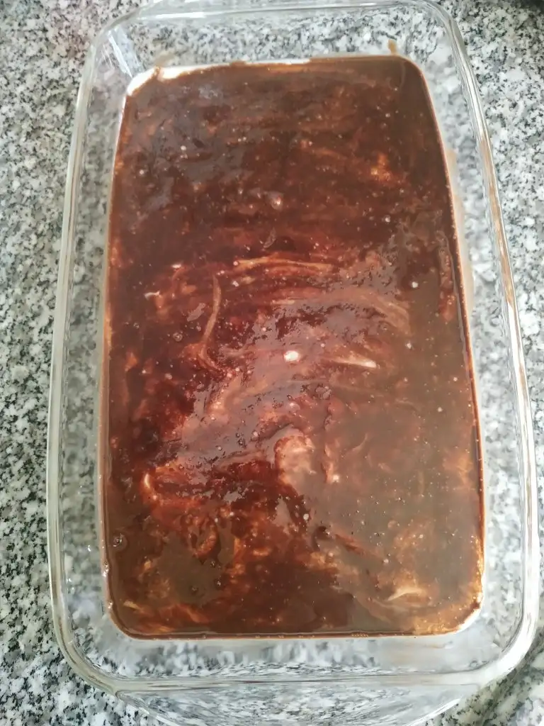 Borcama döküp arasına muz doğradım, üstüne madlen çikolatadan sos.