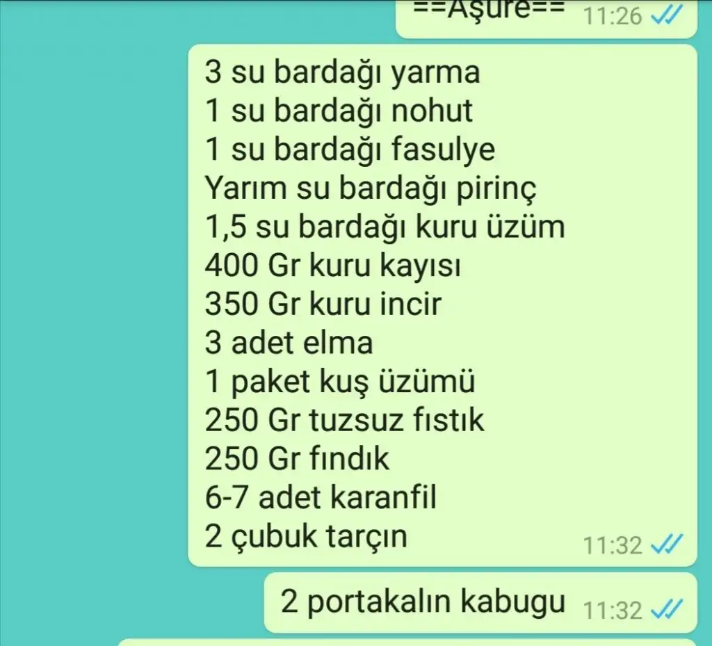 Tamam kahvemsi ben aşağıda bekliyor oluciimMüsait olunca bana aşurenin tarifini yazarmisin