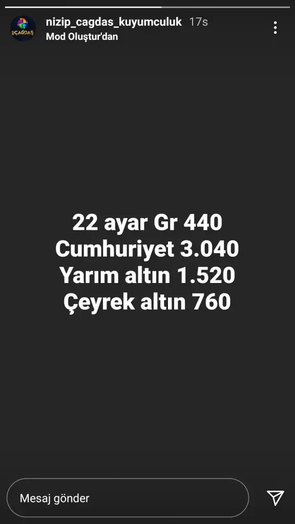bilezik 22 ayar oluyor genelde canim, en azindan benim bildigim o, onun icin biraz daha uygun.Bizim o taraflarda niye size göre daha uygun annem iki gün önce aldı 436 tl ye bugünde sormuştu 440 demişlerdi ama o bilezik şeklinde almıştı yani fark varmıdır bilmiyorum merak ettigim için sordum açıkçası canım