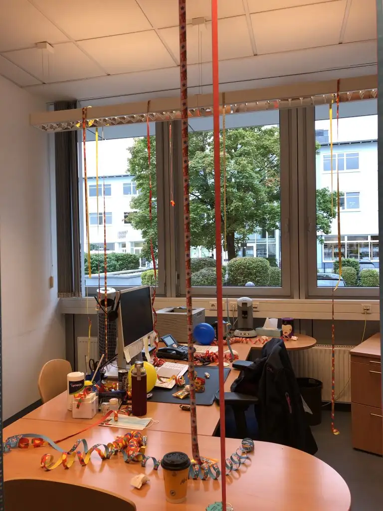 bugün ise geldigime güzel bir süprizle karsilandim 🥰 patronum odami balonlarla süslemis, deneme sürecim bitdi diye ☺️