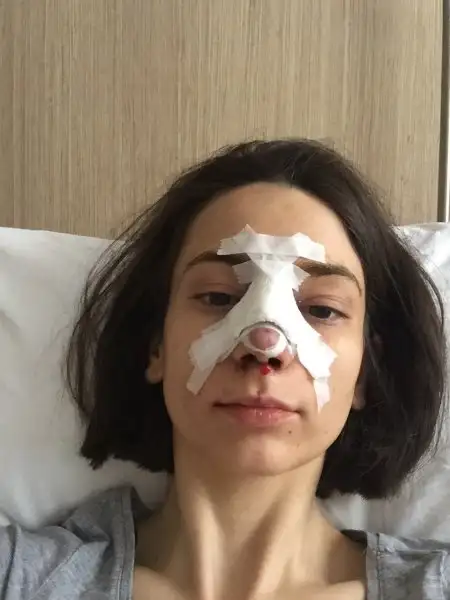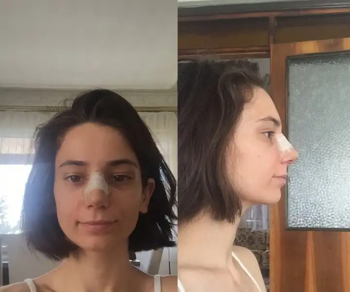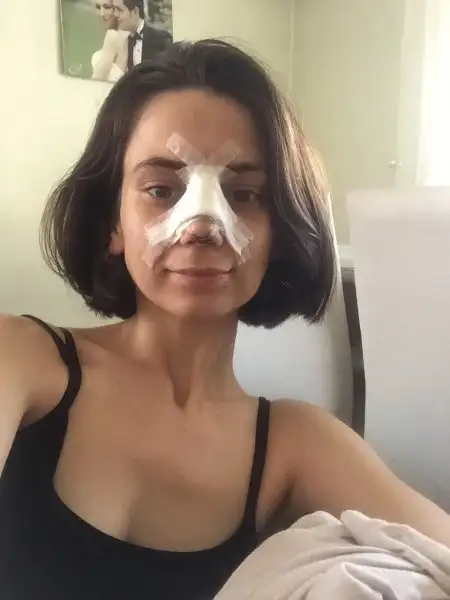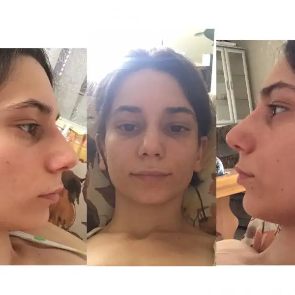2. Haftayıda yata kalka geçirdikten sonra 13. Gün bandajlarım alındı, doktorum masaj yaptı biraz ödemin var ve burun sırtında doğranmış kıkırdakların var onlar biraz daha inecek ve kavisi olmayan düz suratına uygun bir burun yaptık dedi. Ben yine kendime bakmadım bakamadım, eve geldik ayna karşısına geçtim ben şok , değişik duygular, yine şükrettim.. Hiç beklenti içine girmedim ve doktorumada anlattım bana yakışacak uyumlu düz bir burun istiyorum dedim, şimdilik herşey yolunda iyi gidiyor umarım böyle gitmeyede devam eder, Allah herkesin gönlüne göre versin..