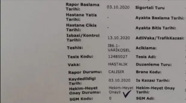 Doktor rapor yazdı mı dzkk sorgulamıyorTamam anliyorum sizi