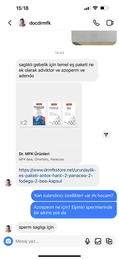 Merhabalar, 38 yaşındayım, 1 sezeryan doğum yaptım, üç yıl sonra 13 haftalıkken kalbi duran ama 17. haftada farkettiğim bir gebelik kaybım oldu. Bir buçuk yıl sonra 5 haftalık boş gebelik yaşadım. Yapılan tetkiklerde kan pıhtılaşmam olduğu tespit edildi. Halen kan sulandırıcı hap kullanıyorum. Sonrasında doktorum yaptığı testlerde Amh değerimin 0.01 olduğunu ve artık tüp bebeğe başvurmam gerektiğini söyledi . Bu dönemde adetim düzensiz de olsa devam ediyordu. Tüp bebek düşünmediğim için bazı doğal kürler uyguladım fakat gebelikle ilgili bir sonuç alamadım. Önce genel sağlığım için marketten alıp kullandığım binbir katkılı hijyenik petleri bırakıp daha doğal olanları kullanmaya başladım. Daha sonra sosyal medyada takip ettiğim Mehmet Fatih Karslı hocama başvurdum. İki defa muayene olduktan sonra MFK eş paketi takviyelerini sadece kendim kullanmaya başladım. Takviyeleri kullanırken acaba alerji ya da başka bir yan etkisi olur mu diye tereddütlerim vardı fakat herhangi bir olumsuzluk yaşamadığım için devam ettim. Zaten takviyeler o kadar doğal ki, kapağını açar açmaz herbirinden farklı bitki kokusu geliyor. İki aylık kullanımdan sonra Rabbimin izni ile sağlıklı ve doğal bir gebeliğim oldu. Kendisi ve ekibi çok samimi ve güler yüzlü. Daha önceki olumsuz tecrübelerimden dolayı yaşadığım kaygı için bile bana çok destek verdiler. Her zaman duacıları olacağım. Kendisinin de dediği gibi "Eğer menopozda değilseniz, gebelik ihtimaliniz var."