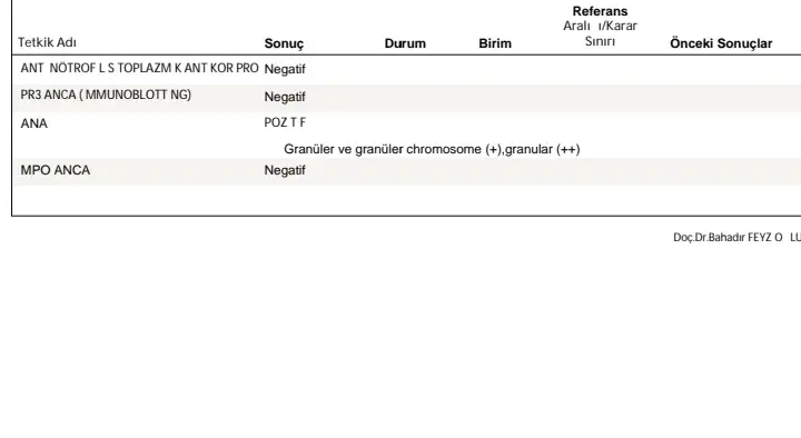Gebelik kaybım oldugu ıcın ıstedı doktor, daha görüşmedim ne diyecek bılmıyorum, ınternetten arastırdım biraz ama kafam karıstı.. Yakında ölecek miyim ben dedımKuzum selam denk geldim ANA genetik bir test Anti nükleer antikor yani otoimmün bir genetik rahatsızlık. Genelde çok sıradışı durumlarda istiyorlar. Ve detaylı bir genetik tarama yaptırırsın bu antikoru çünkü çok sıkta yanlış pozitif verebiliyor