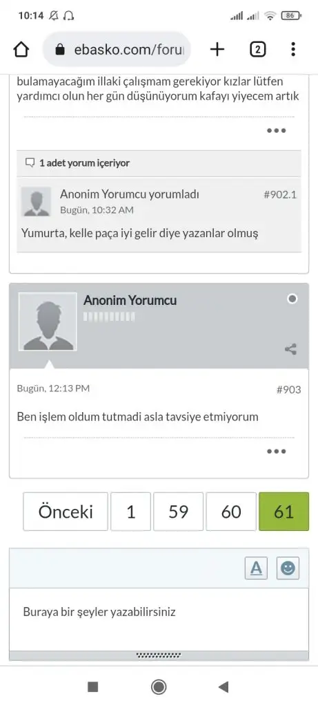 Link eklenmiyordurKızlar bu ebasko forumda yorumlar siliniyor. Bu ebasko ne ayak? Buradakilerdemi yalan yorum Allah kahretsin çıkmaza girdim iyice artık