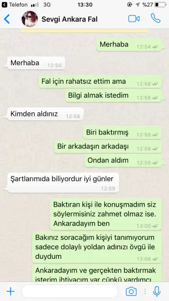 Bir de kim bilmiyorum Kızılay’da bi kadına baktırmıştım aşırı küfürlü konuşuyordu o da bilemedi.