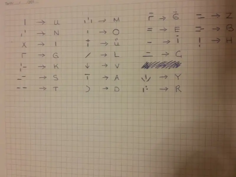 Burda hangi isaret hangi harfe tekamul ediyir knu nasil cozdun boyle bir alfabe varmi valla helal cok cabuk cozdun