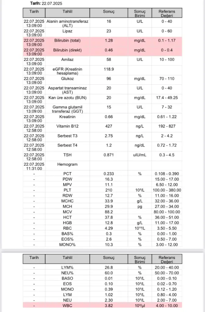 Kızlar merhaba 17 temmuzda ishalle birlikte ateş oldu38 39 derece civarı ilac verdi doktor.20 temmuz da da eşim gripken grip bulaştı boğazım filan ağrıdı halsizlik 37.5 ateşle bugünde yani 22 temmuzda kan verdim kan tahlilime bakar mısınız wbc beni tedirgin etti