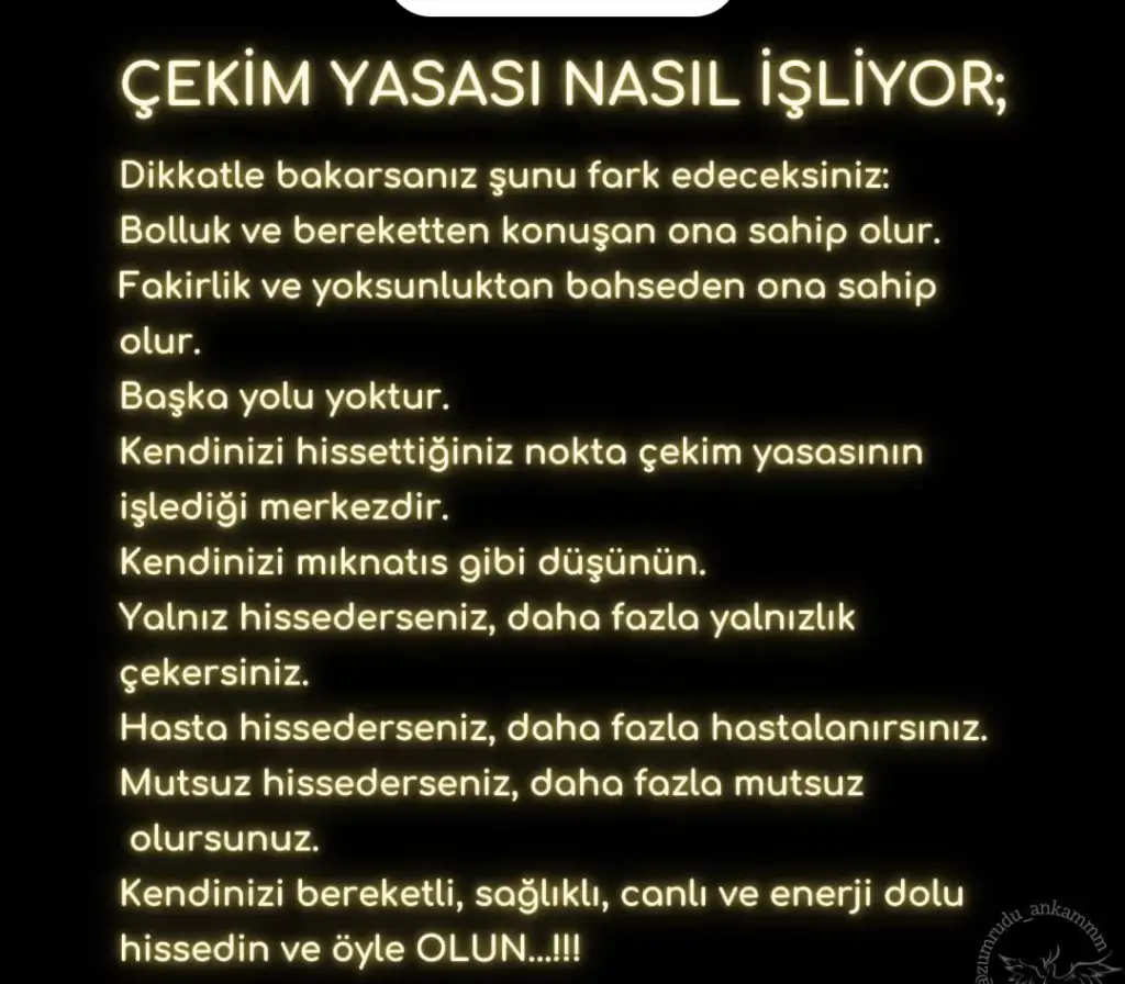 Hayır biz olumsuzu çağırdığımız için bizi buluyor sanıyoruz. Ben artık böyle düşünüyorum. Bugüne kadar belayı hep kendim çağırmışım yani. Azıcık olumluya odaklansak onu da çağırmayı başarabileceğiz inşallah
