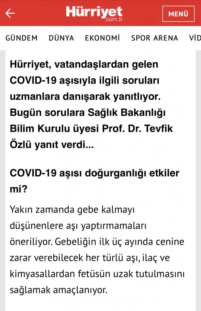 Sen yine de tedavini yapacak doktora bir danışAslında ilk açıklamalarda böyle şeyler yazılıyordu. Benim kafamı karıştıran da bu yazılar şu an. Ama son zamanlarda doktorlar da aşı yapılması taraftarı. Özellikle risk grubu gebeler için tavsiye ediyorlar. Tabi İlk 3 ay sonrasında. Tüp bebek düşünen çiftler aşısını olduktan sonra tedavi olsunlar gibi söylemler var.