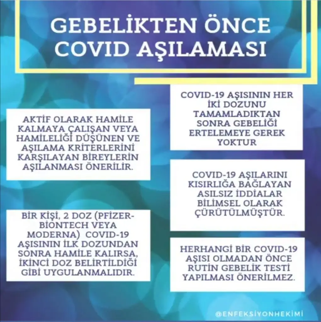 Tam da kafamın karıştığı bir konu. Denetim elemanı olduğu için aşı önceliğim oldu gün aldım yarın olacağım. Belki hatırlarsınız tüplerim tıkalı çıkmıştı hsg de. Gebe kalmam doktoruma göre mümkün değil ama cevat hoca tüpünün biri açık demişti yazmıştım burada önümüzdeki ay baktırmak için ona gideceğim. Yumurtlama günlerimde eşimle birlikte olduk. Her ne kadar doktoruma göre gebe kalamayacak olsam da ya açıksa ve kalırsam diye de düşünmüyor değilim. Eşim bir sıkıntı çıkmayacağını söylüyor ol aşını eğer hamile olsan bile covid geçirsen daha mı iyi diyor. Kafam karıştı benim de. Mucize yaşayıp hamile olsam bile bilmeden aşı olmuş olacağım siz olsanız napardınız. İşim gereği de insanlarla bir Aradayım zaten o yüzden öncelikl grup olduk