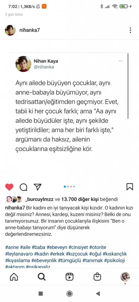 İlkinde annem telefonda arkadaşıyla konuşuyor, benim duyduğumu bilmiyor. Arkadaşı çocukları soruyor. Annem “Mine’nin bir kızı var. Merve’nin ikizleri var. Nihal Türkiye’nin en iyi doktorlarına gitti ama çocuğu olmuyor” dedi. Arkadaşı da “ Evliliği iyi olsunda çocuk işleri nasip” dedi. Daha sonrasında ben 5. Tüp bebek tedavimde şu an hamileyim. Yani ben tedavi oluyorum evet ama arkadaşına böyle diyemez miydi? “Tedavi oluyor, uğraşıyor, inşAllah olur.” dese benim için daha iyi dilekte bulunmuş olmaz mıydı?