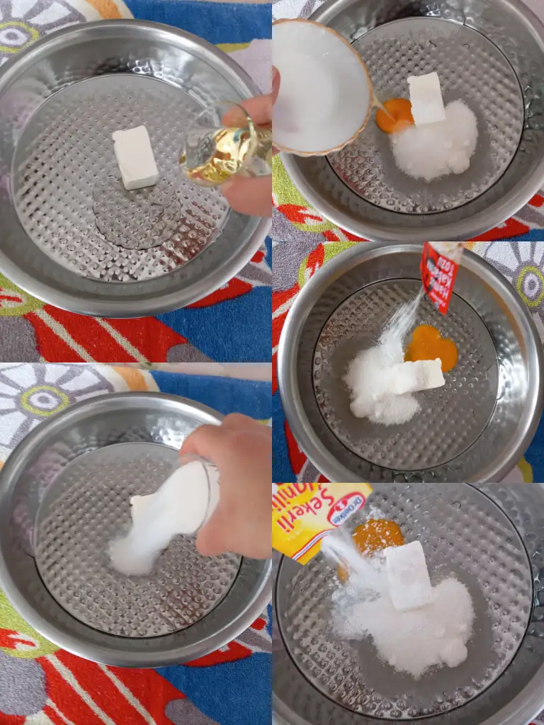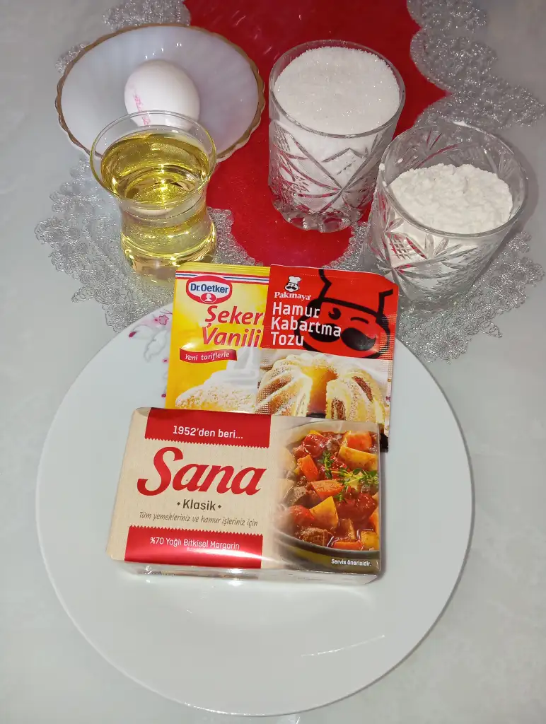 Yoğuracağımız kaba ilk başta margarini yumurtayı sıvı yağını şekeri irmiği kabartma tozunu ve vanilyayı koyalım. Unu en son ekleyip yoğurmaya başlayalım.