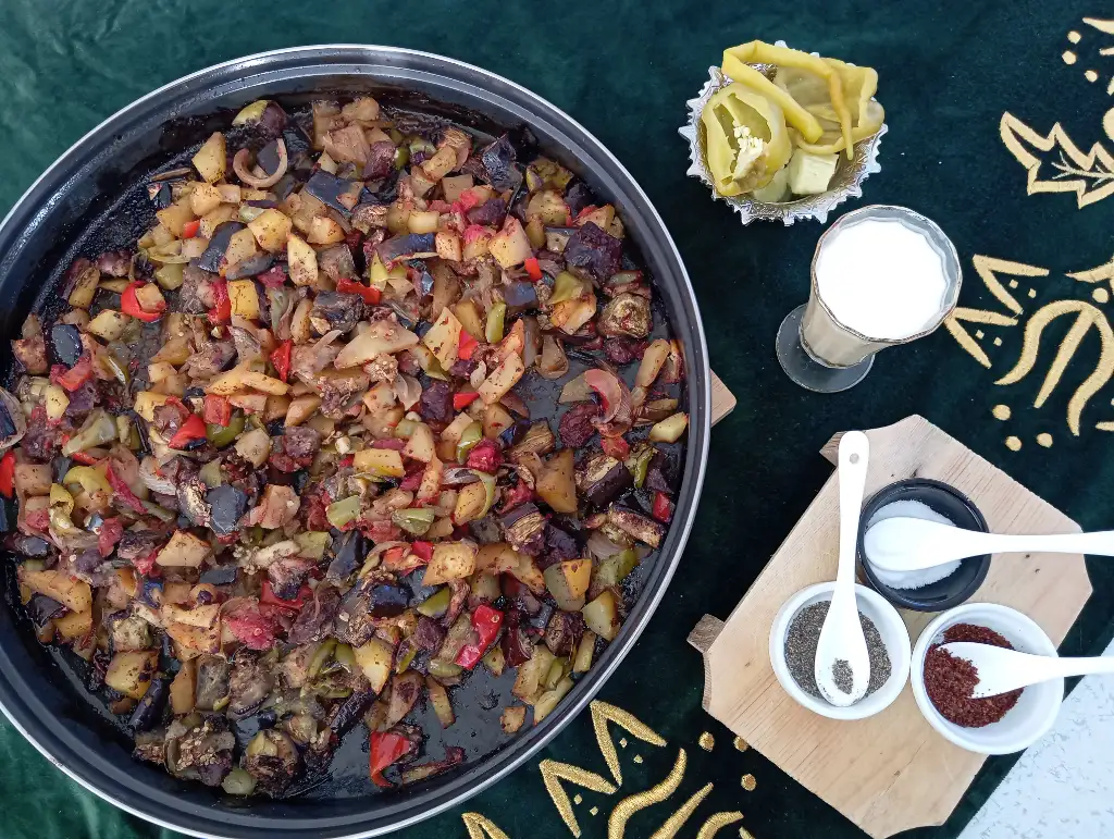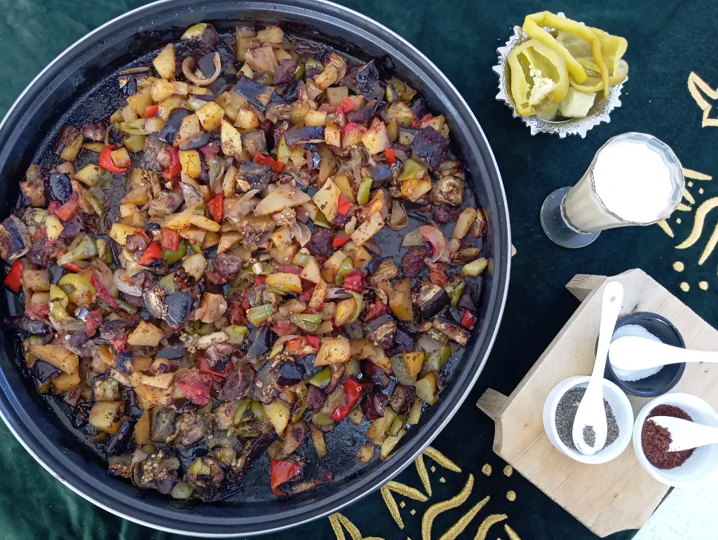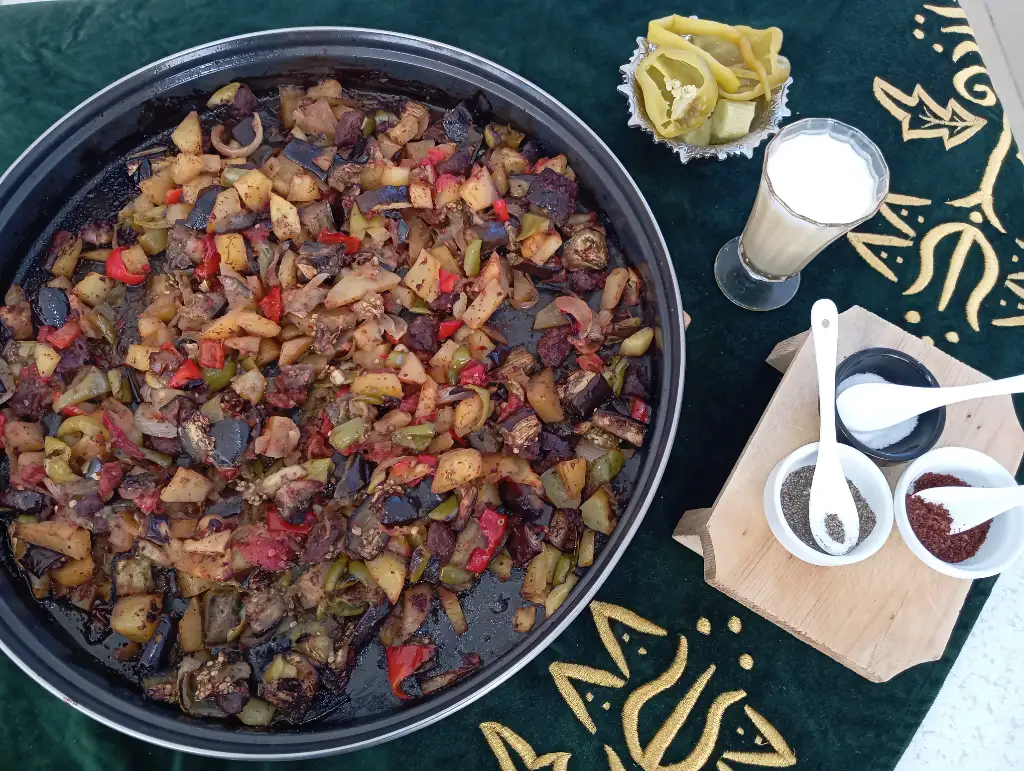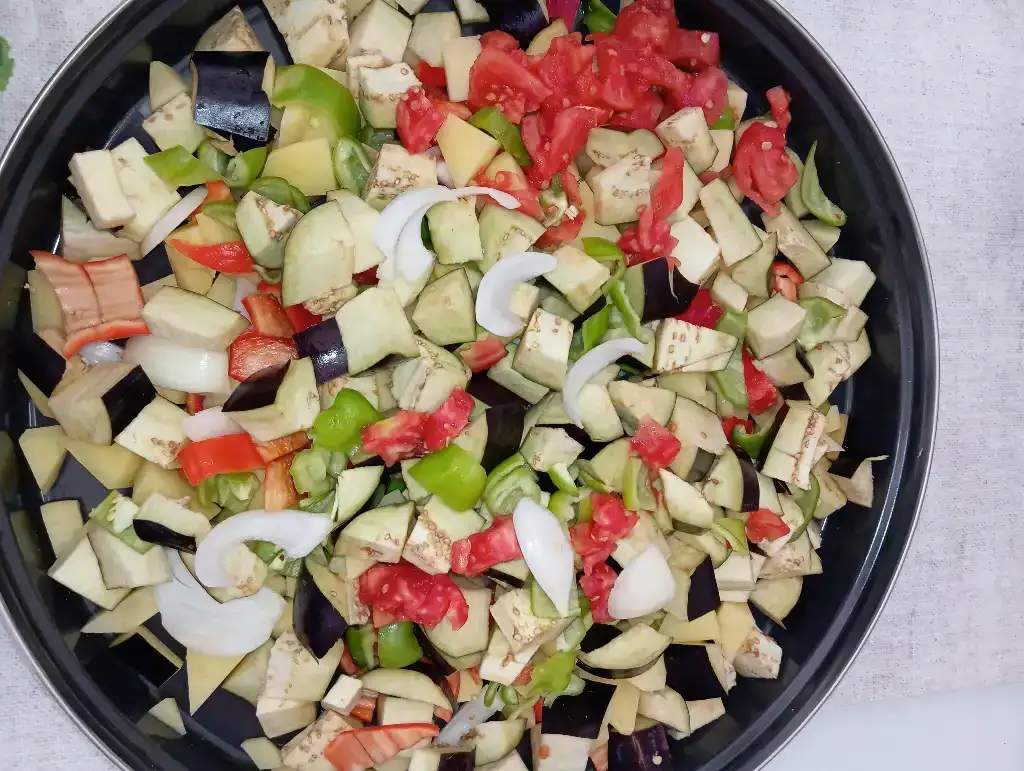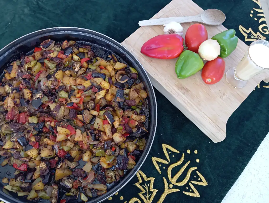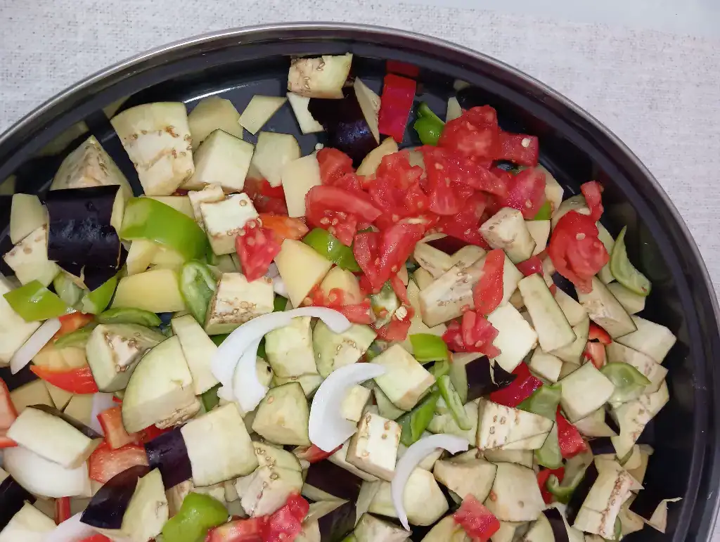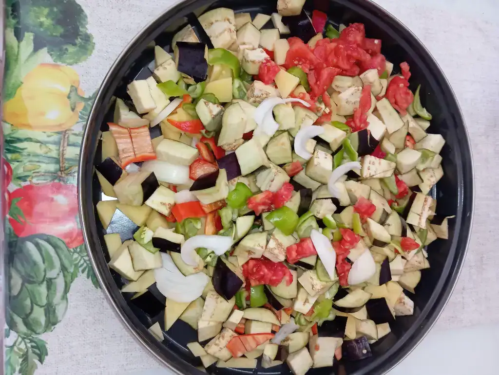 Yapılışı ; malzemeleri sırasıyla doğramaya başlayalım . Hepsini doğradıktan sonra salça ekleyip zeytinyağ ilave edip baharatlarını koyup karıştıralım. 200 derece ısıtılmış fırına koyalım...