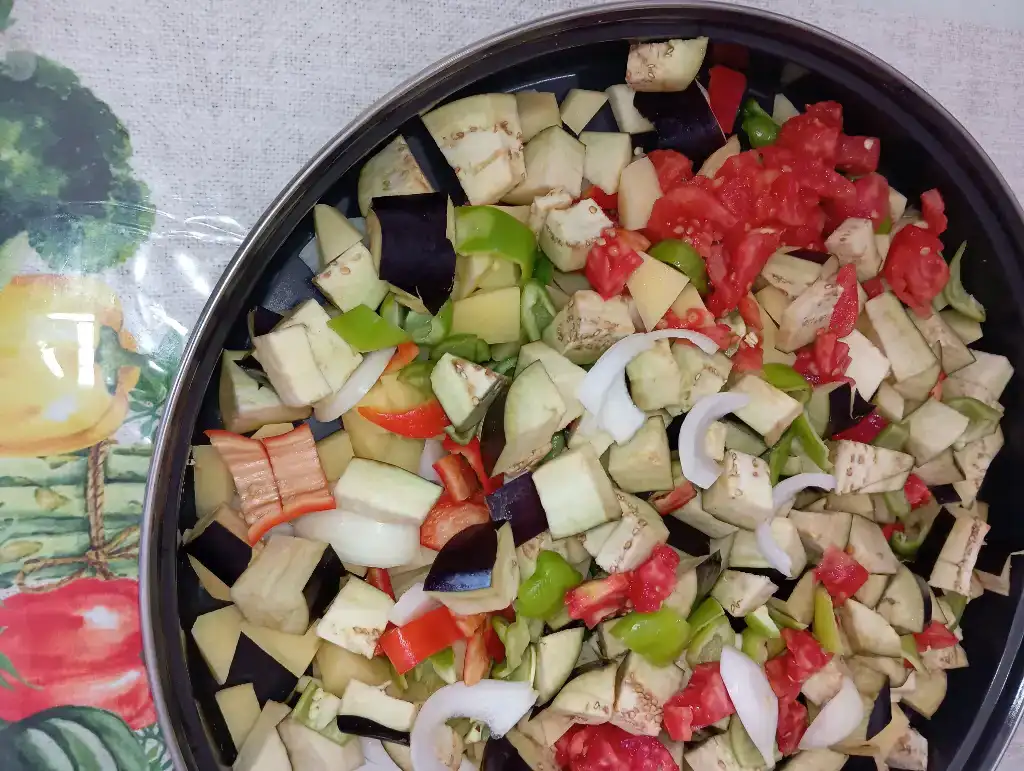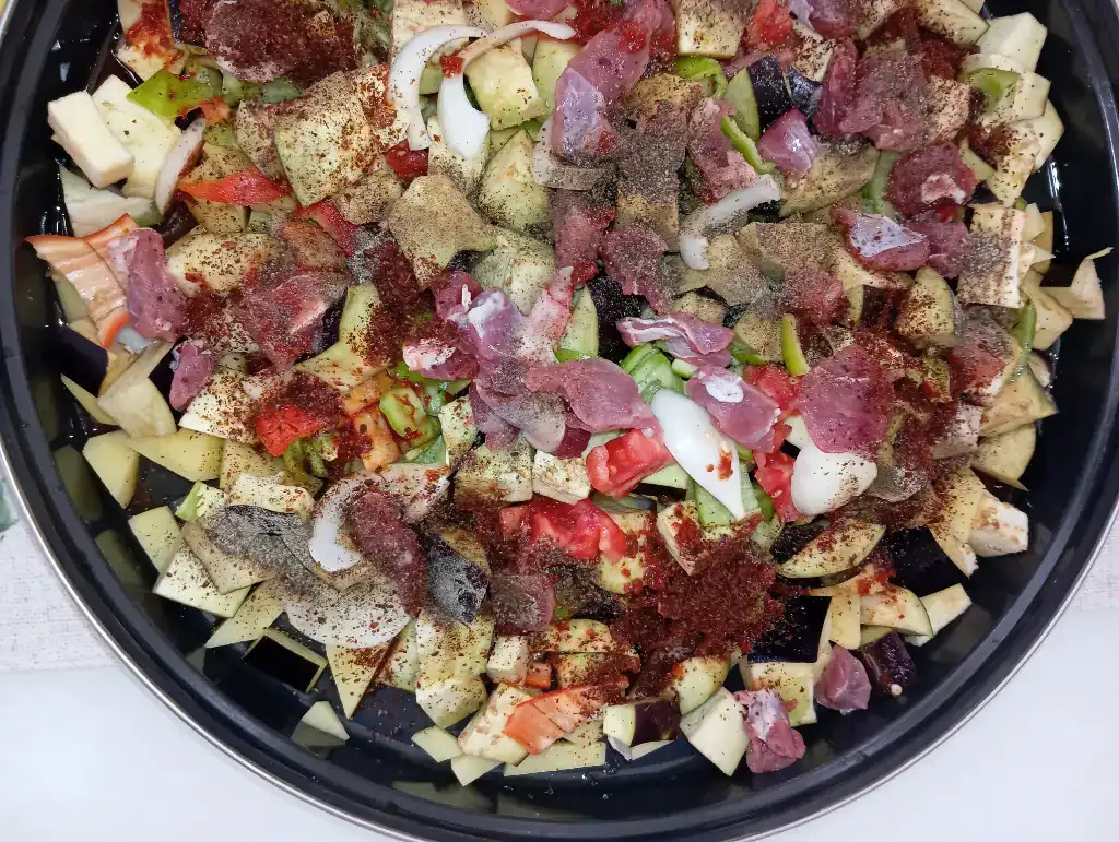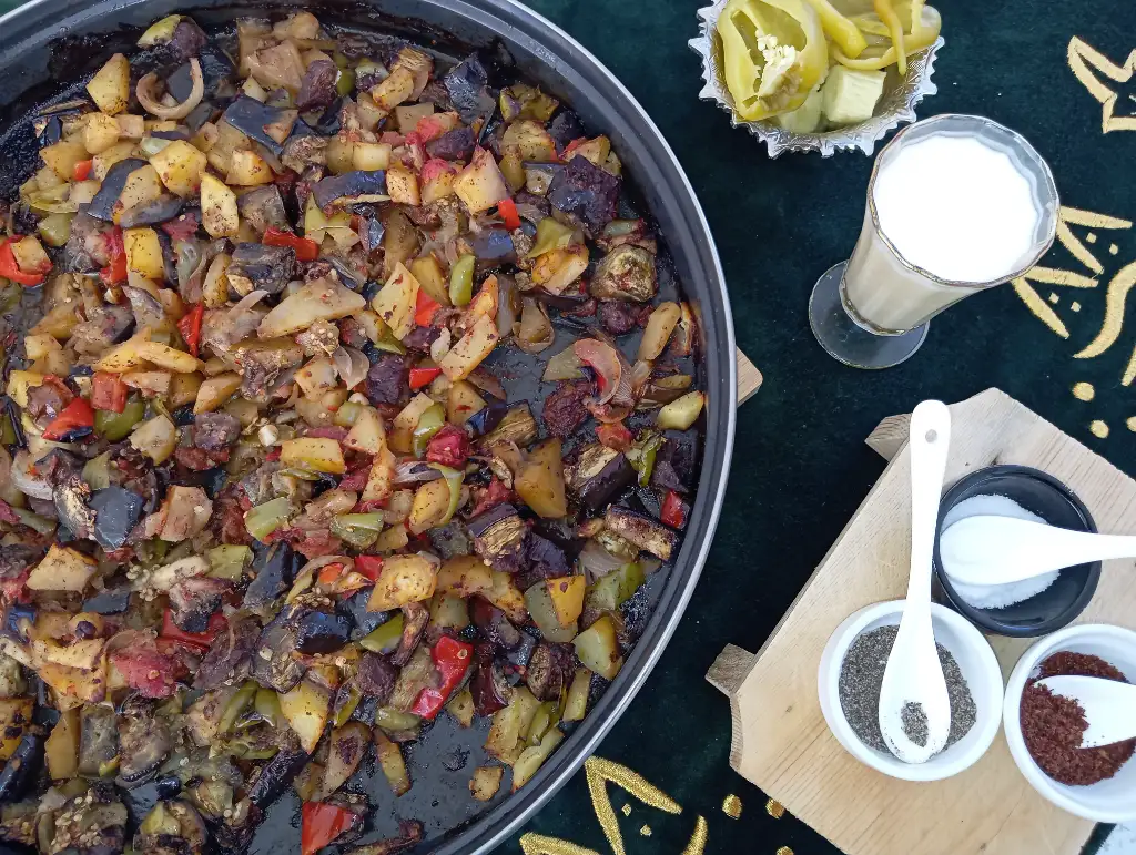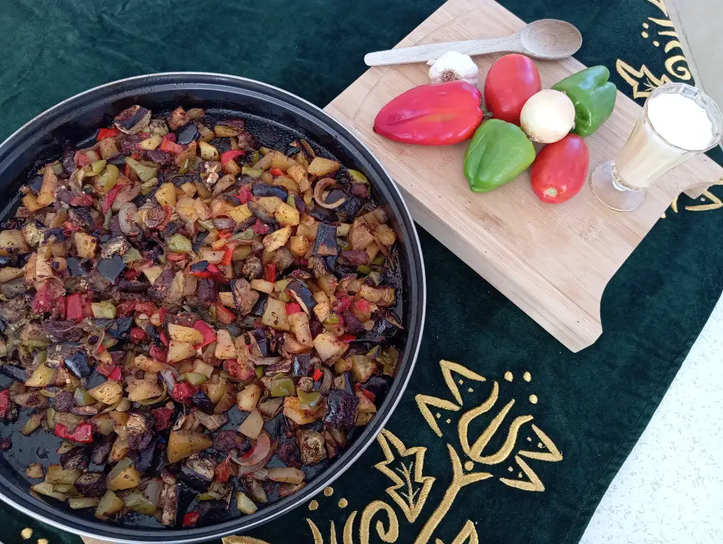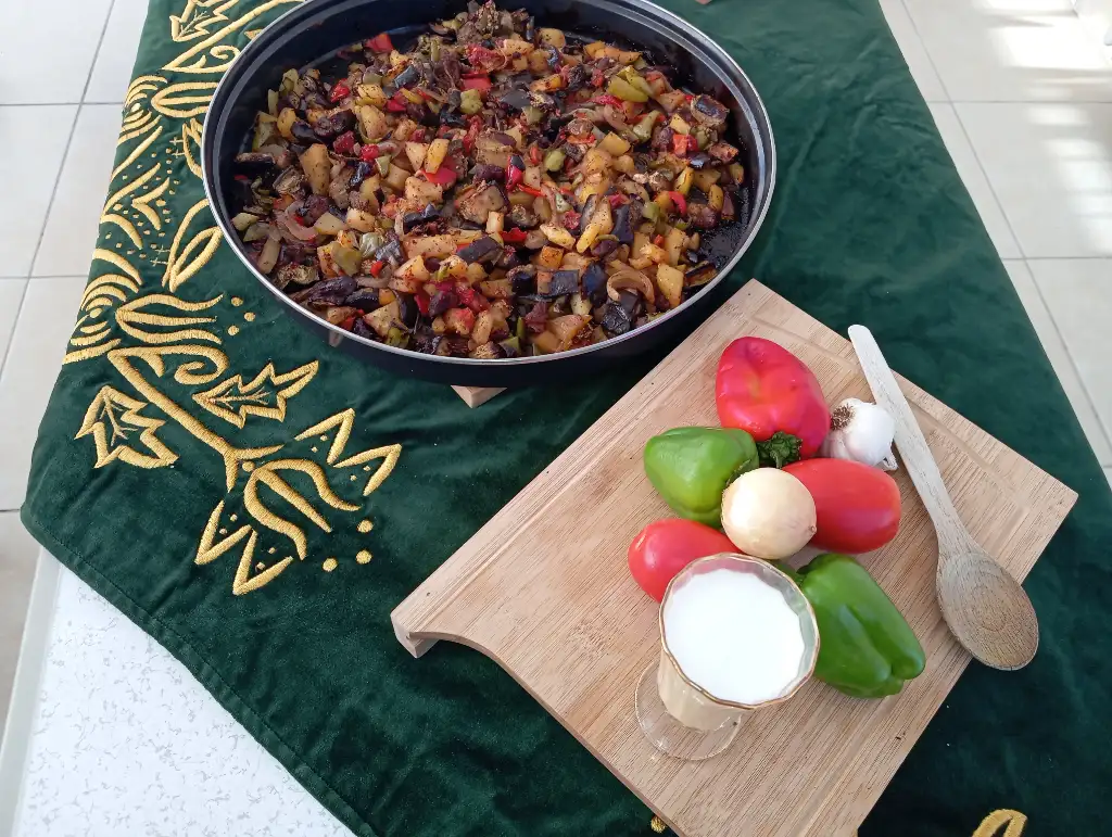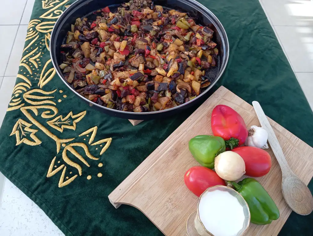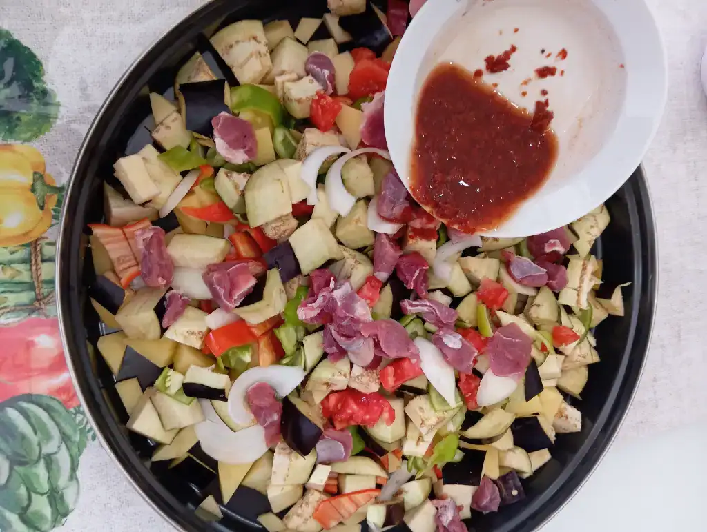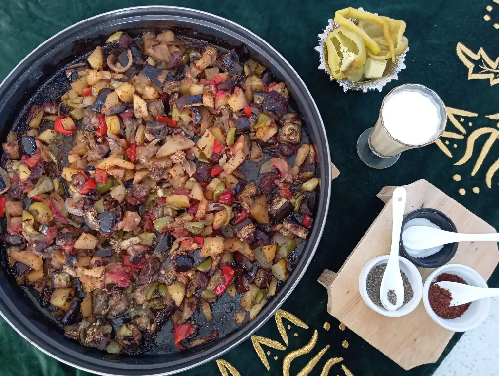 Yapılışı ; malzemeleri sırasıyla doğramaya başlayalım . Hepsini doğradıktan sonra salça ekleyip zeytinyağ ilave edip baharatlarını koyup karıştıralım. 200 derece ısıtılmış fırına koyalım...