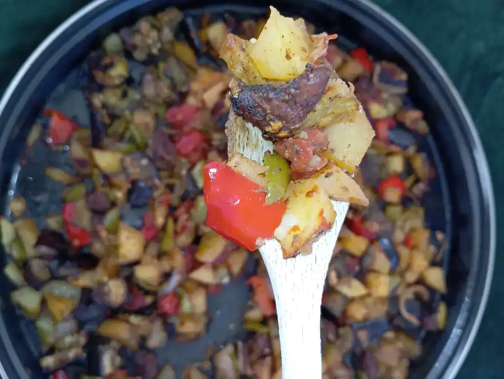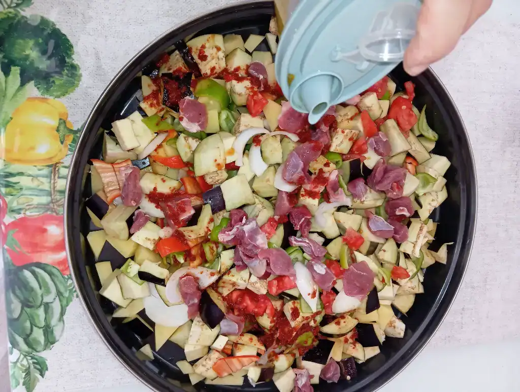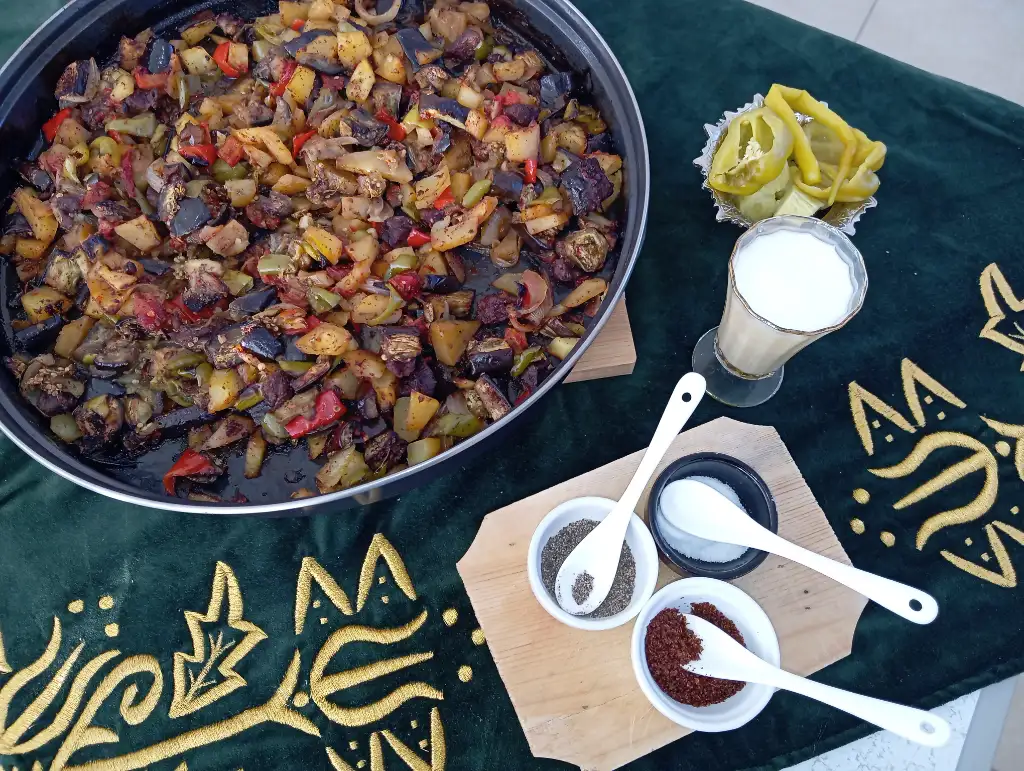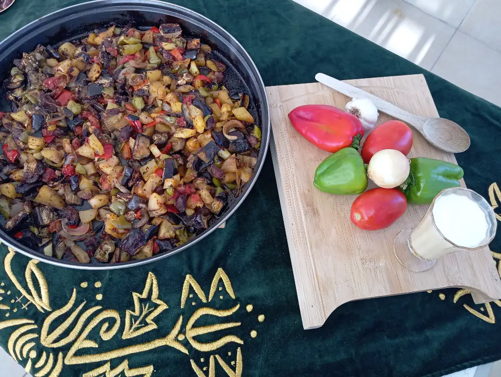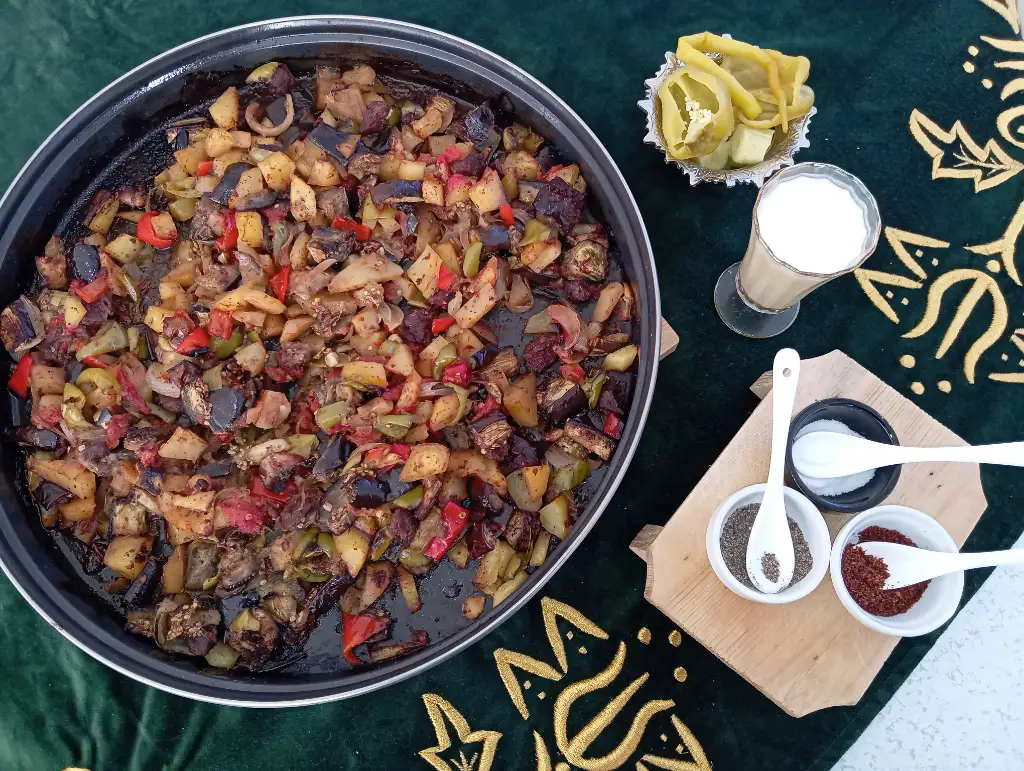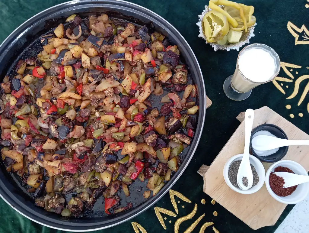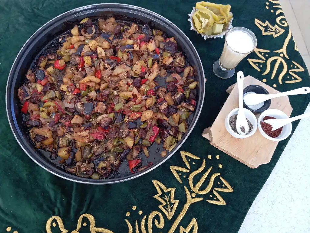 Yapılışı ; malzemeleri sırasıyla doğramaya başlayalım . Hepsini doğradıktan sonra salça ekleyip zeytinyağ ilave edip baharatlarını koyup karıştıralım. 200 derece ısıtılmış fırına koyalım...