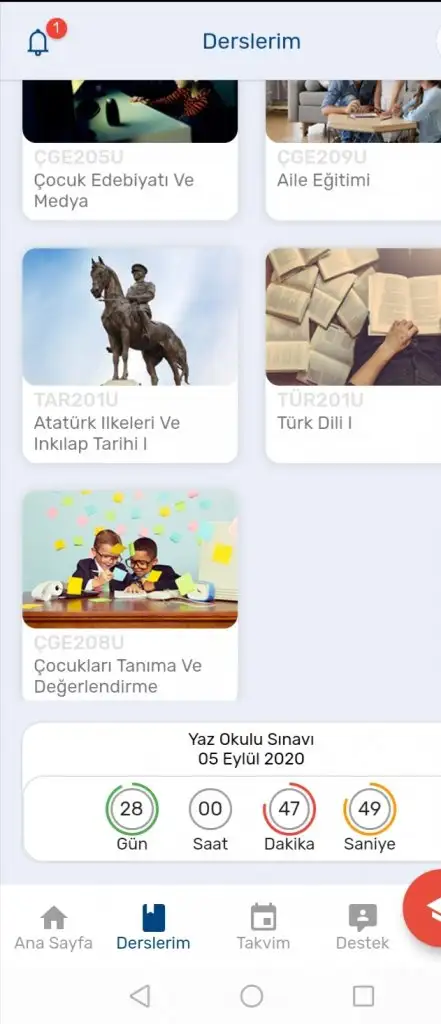 Bende çocuk gelisimi veya aşcilik düşünüyorum çocuk Gelişimi nasıl sizceAöf ün kendi uygulaması var telefon tablet vs ye yükleyebiliyorsun ve kitaplar onun içinde bulunuyor zaten. sınavlara gelince yılda 2 dönem var bahar ve güz dönemi her dönemde her dersten 2 sınav oluyorsun önce vize sonra final sınavları genelde sınavlar 2 gün yapılıyordu cumartesi bölüm dersleri pazar günü de İngilizce sınavı oluyordu ama pandemi sürecinde sınavlar evde yapıldı ve sana sınav için 5 6 gün zaman veriliyor sınavını olmak istedigin dersi sistemden seçiyorsun ve tek tek istedigin gün istedigin dersin sınavını olabiliyorsun. Ben aöf çocuk gelişimi okuyorum zamandan kazanmak için bir dönem erken bitirmek istedigimden şuan yaz okulundan faydalanıyorum bak dersler uygulamada bu şekilde bulunuyor kitaplar canlı dersler vs hepsi içinde var