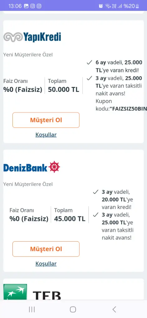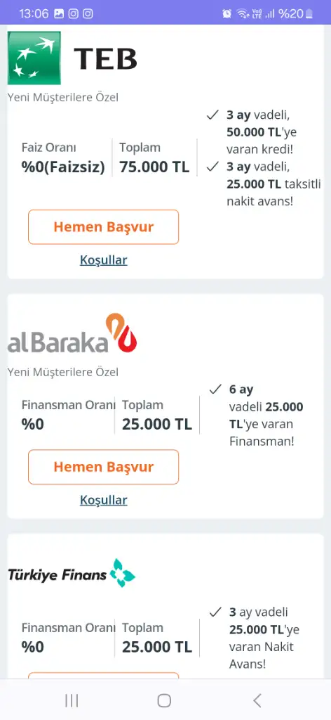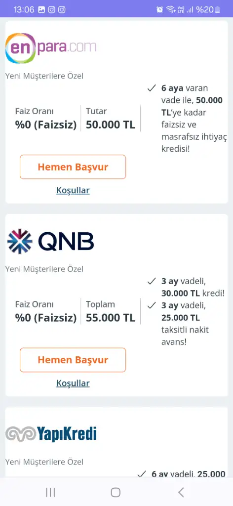 daha once hesabının olmadigi bankalardan hesap ve kredi kartı açınca sana sifir faizli kredi veriyor.Bunlardan alamadım maalesef