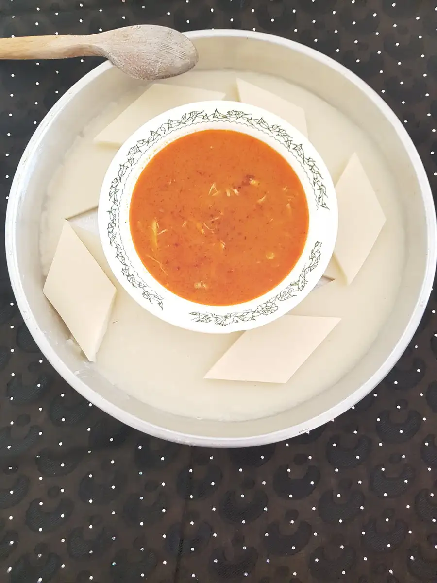 Ocakta ki hamur göz göz olduktan sonra 2 dk daha karıştırarak kaynatıp ıslattığımız uygun bir tepsiye hızlıca dökelim. Önce oda ısısında sonra soğuk biryerde dinlendirelim.