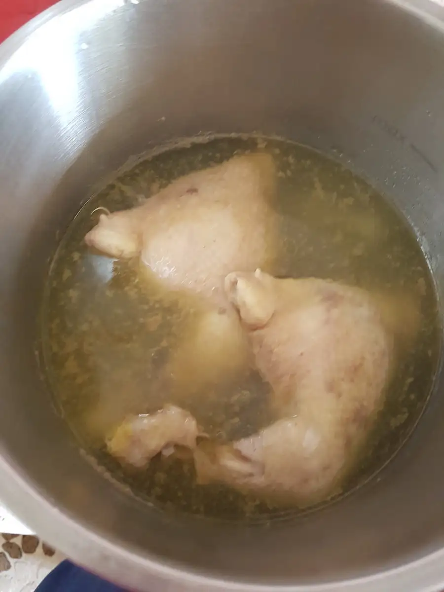 Tavuğun suyunuda büyük bir tencereye alarak kaynamaya devam ettirelim dilerseniz bir miktar daha kaynar su ekleyebilirsiniz.