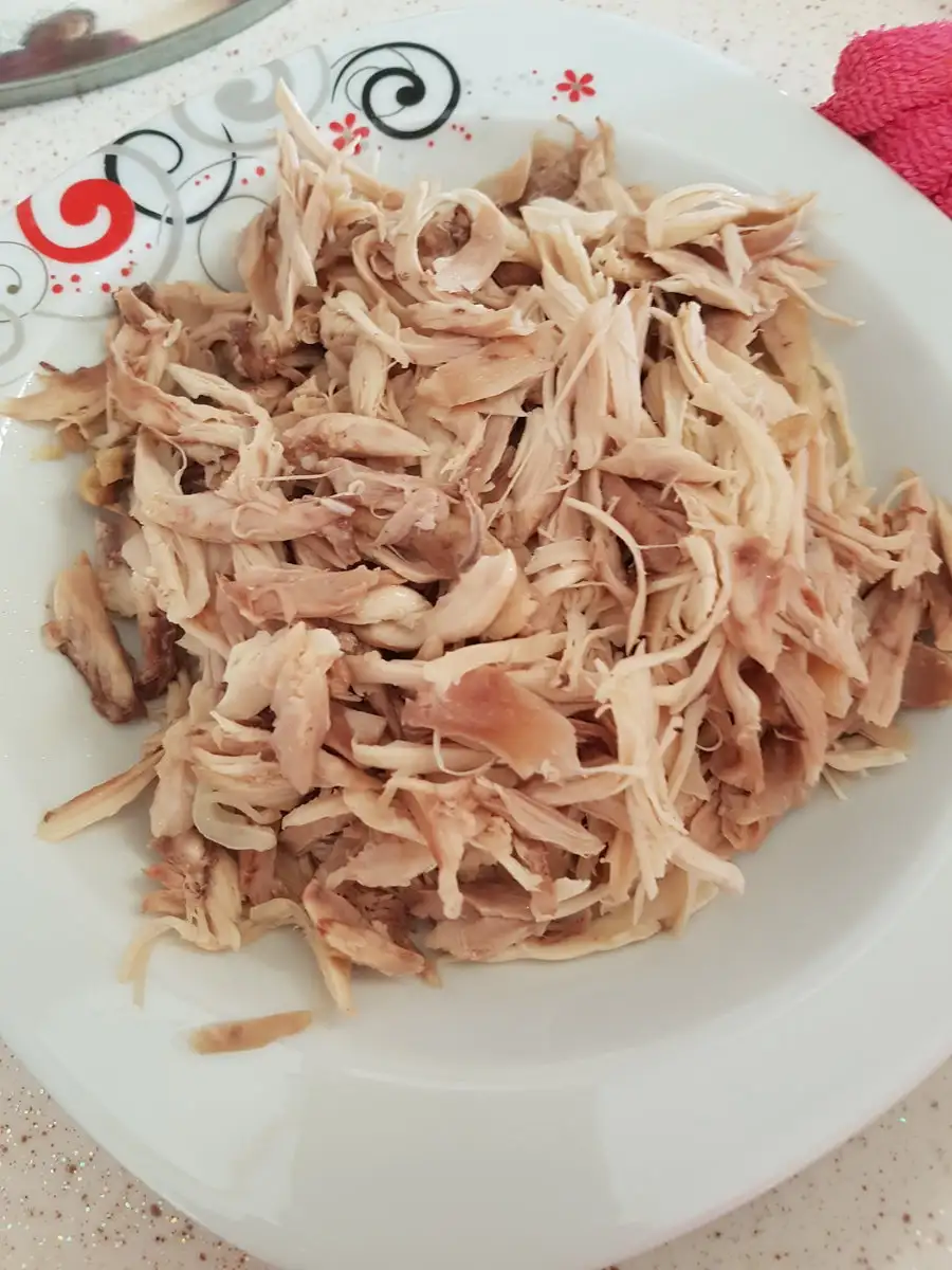Haşlanan eti elimizle didikleyerek parçalayalım ayrı bir tabağa.