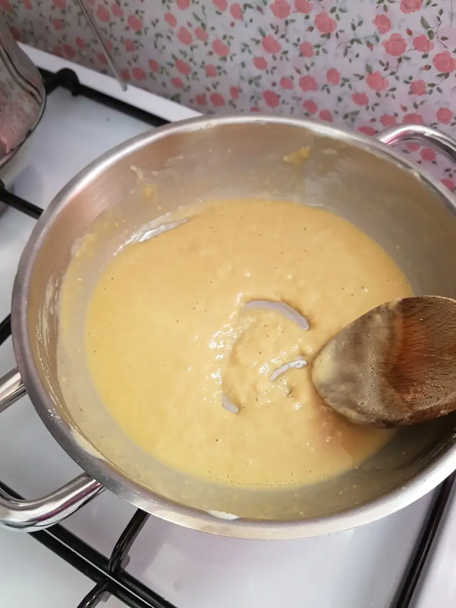Kaynayan suya yavaş yavaş döküp hızlıca karıştıralım.