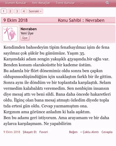 bir de 9 ekim de bir adama aşığım 45 yaşında yazmış ee 4 aylık ta hamile kendisi valla devrelerim yandı adamla yeni tanışıyor ee bebek nerden çıktı o zaman kafamda deli sorular