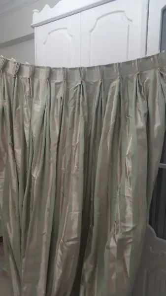 ben ılgılenıyorum ozelden ayrıntılı foto ve fıyat atın lutfenMerhaba yeniden, ben sizden sonra dikkat ettim gri degilmis cizgisi platin gibi ucuk altin renkmis ve o kisimlari saten. English homedan almistim fonlari ve tülü. Fon rengi tam olarak su yesili-platin olcu eni 1 metre boyu 2,5m 2 adet fon mevcut. Tul de krem rengi eni 2 metre, boyu 2,5m