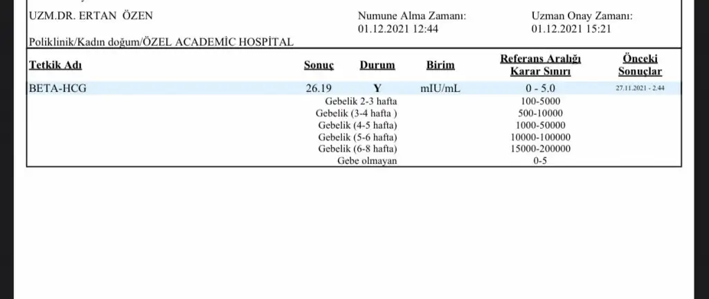 Benim 26.19 çıktı adetime 3-4 gün var doktor aradı hamilesiniz dedi ama 2-3 gün sonra yine test yaptırıcamKızlar değerim 38 çıkmışAllah tamamını erdirsin inşa Allah. Adetten 1hafta geçmiş sice nasıl?