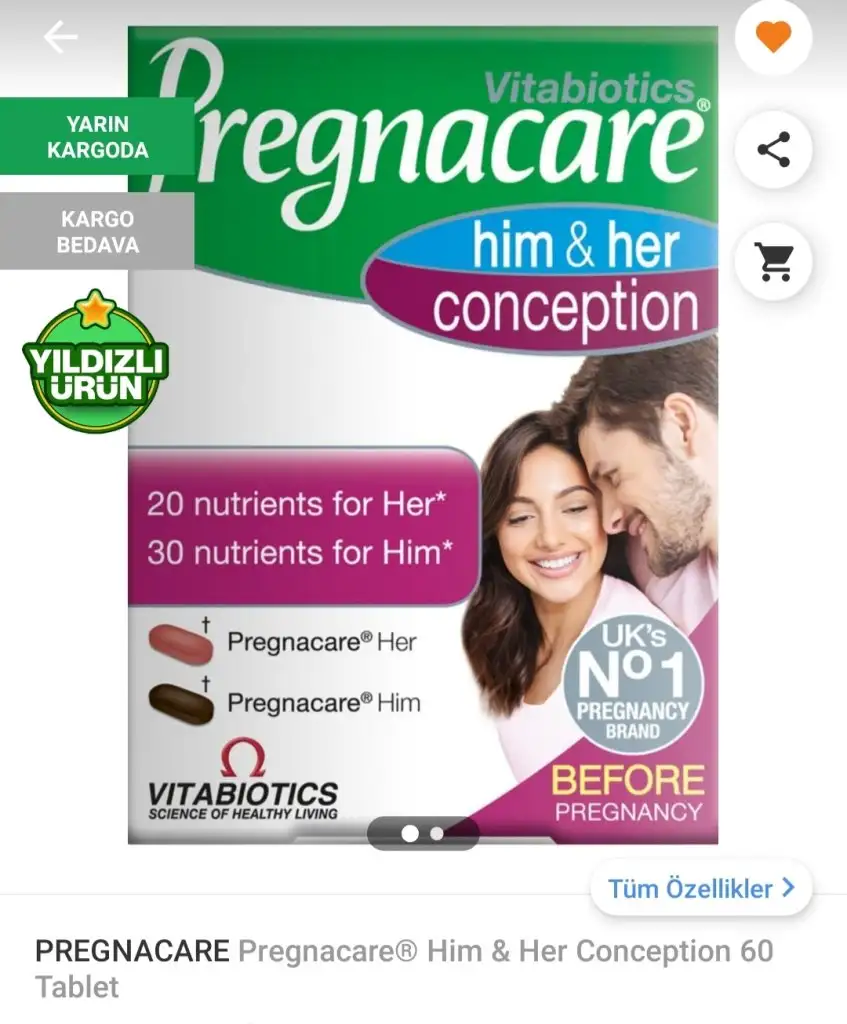 Canım bizim yeni aldığımız bu şimdi, bu da multivitamin ama içinde 60 tane var yarısının rengi pembe onlar kadın için yarısının rengi kahverengi onlar da erkek için. Eşle beraber kullanılıyor toplamda bir aylık bir vitamin ama Bebek isteyen çiftlere özel bir içeriği var. Biz de bu ay başlayacağız bakalım buna ise yarayacak mı