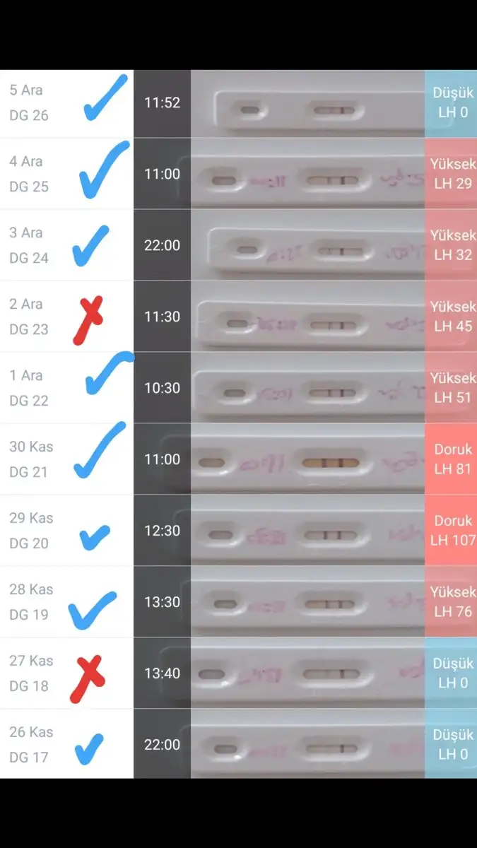 Canım laboquik erken gebelik testiyle yumurtlamadan 10 gün sonra yaptım ben ama o kadar silikti ki testi boşa kullanmış oldum. Bi kaç gün daha beklesem daha belirgin çıkardı büyük ihtimalle. O yüzden bekleyebildiğin kadar bekle en az 12 gün geçsinSelam kızlar benim.bu ayki ovülasyonun böle mavi işaretli olanlar değerlendirildi kırmızı çarpı ilşki yok anlamında bu tabloya göre sizce test ne zaman yapmalıyım elimde laboquick erken gebelik testi var