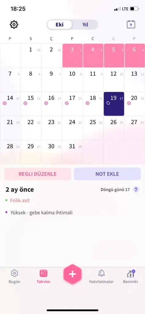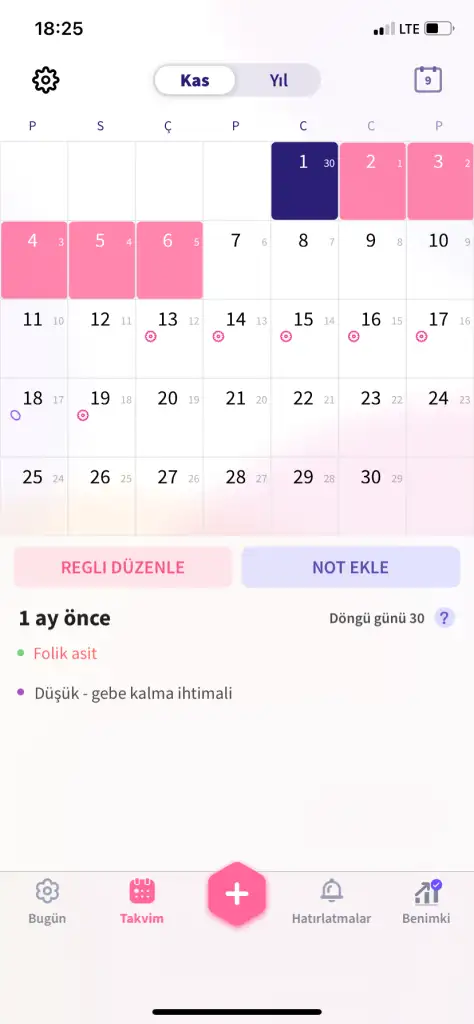 Ekimdede 18inde olmuşKasım'da 18 inde olmuş mesela yumurtlama
