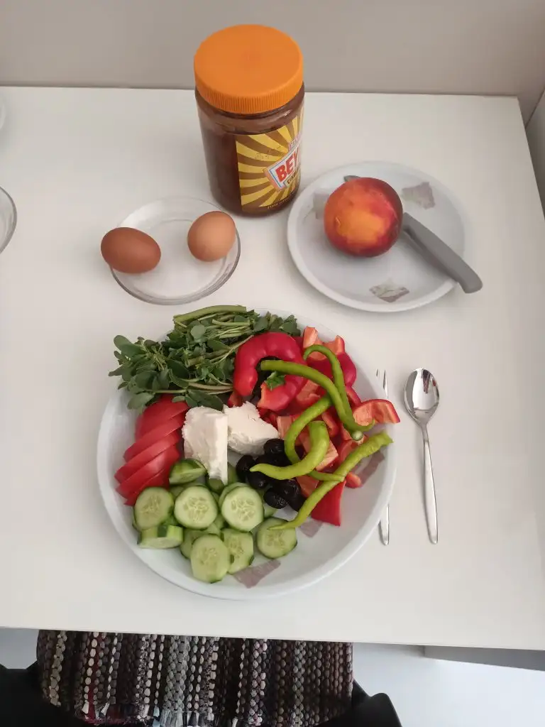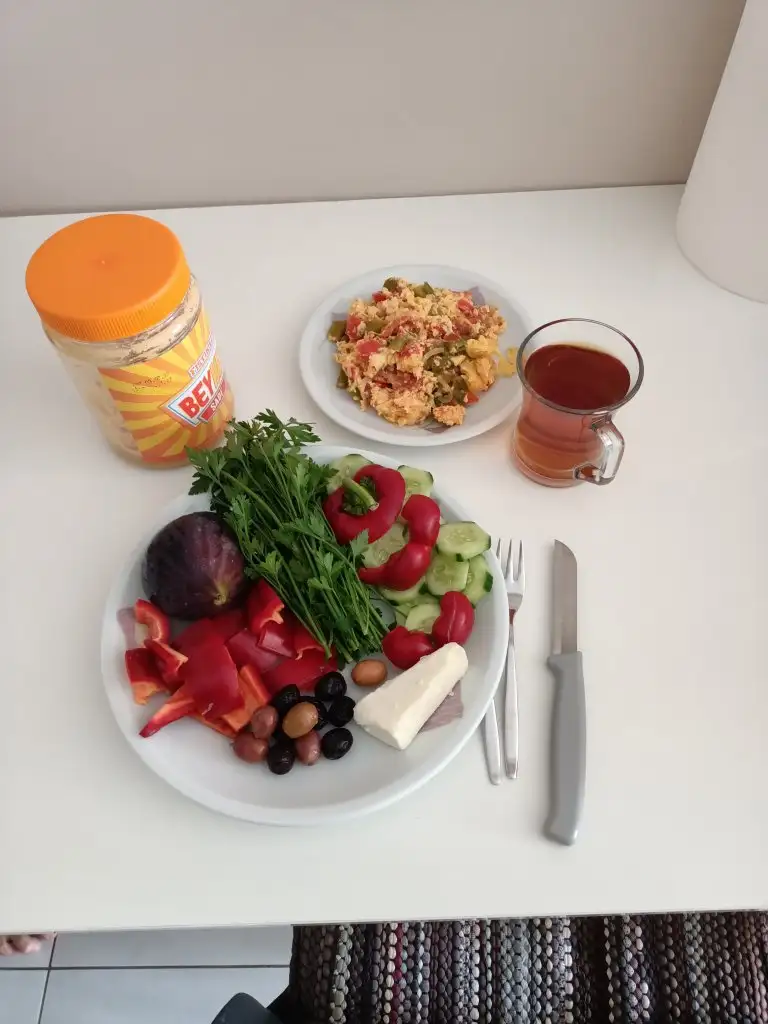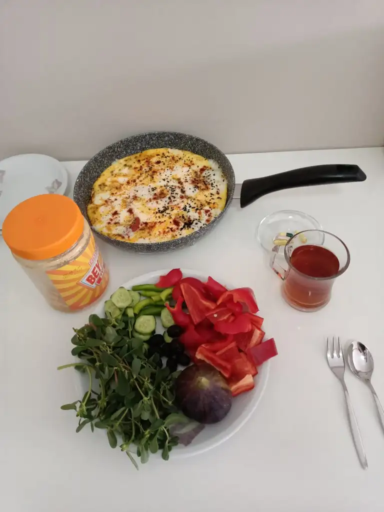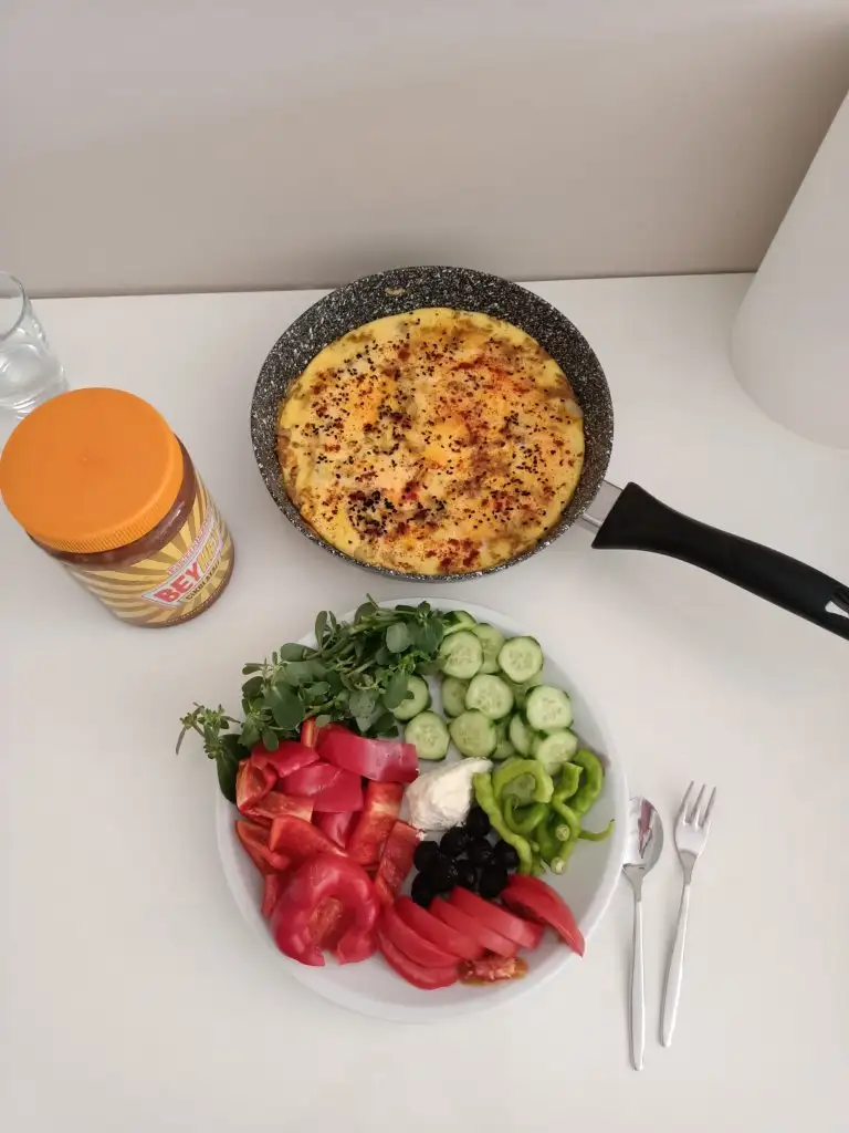 İkinci öğünü yoğurt vs gecistirirken sadece dün gece biraz zorlandım. O da sanırım dun epeyce aktif olduğum içindi. Yeme krizine döneceğini hissetseydim, tarçınlı yoğurt veya tahinli süt icecektim. Şükür ki olmadı, çünkü ilk ogunlerim her zaman sağlam oluyor. Masadan güzelce doyarak kalkıyorum. Mesela sahanda iki büyük soğan ve beş yumurta vardı. İkiye bölüp eşimle paylaştık...🤭💪